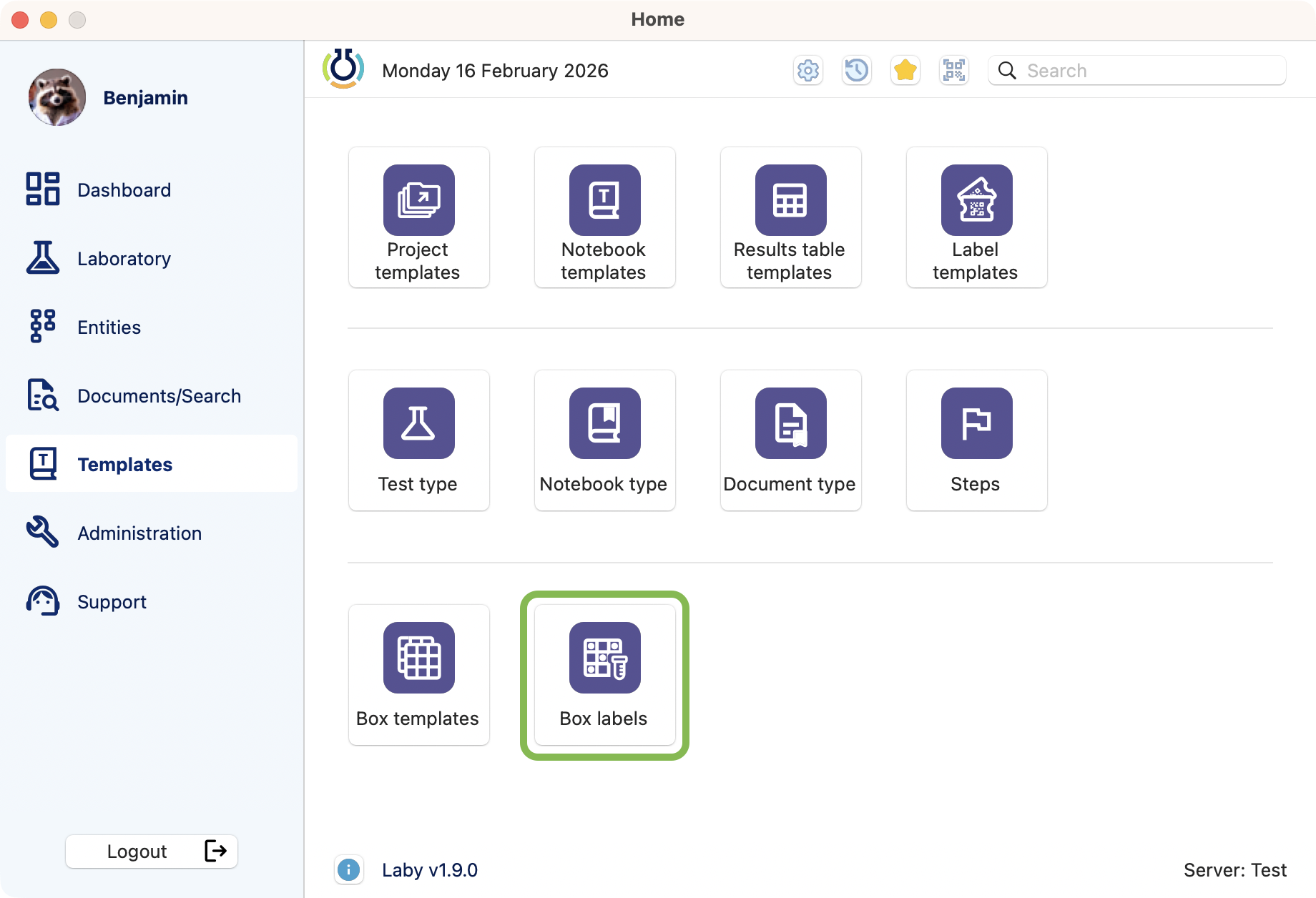 Box labels module access.