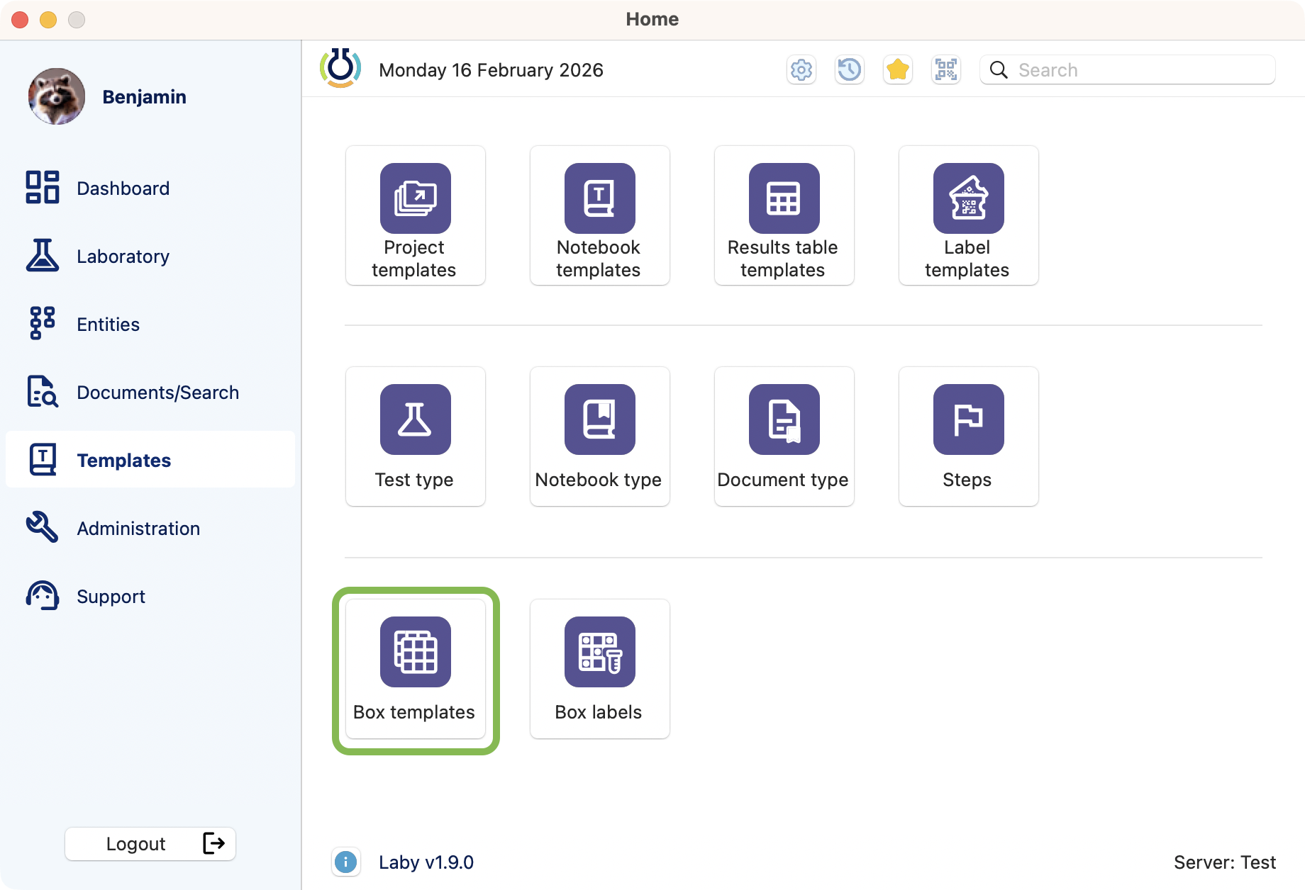 Where to find the box templates management.¶