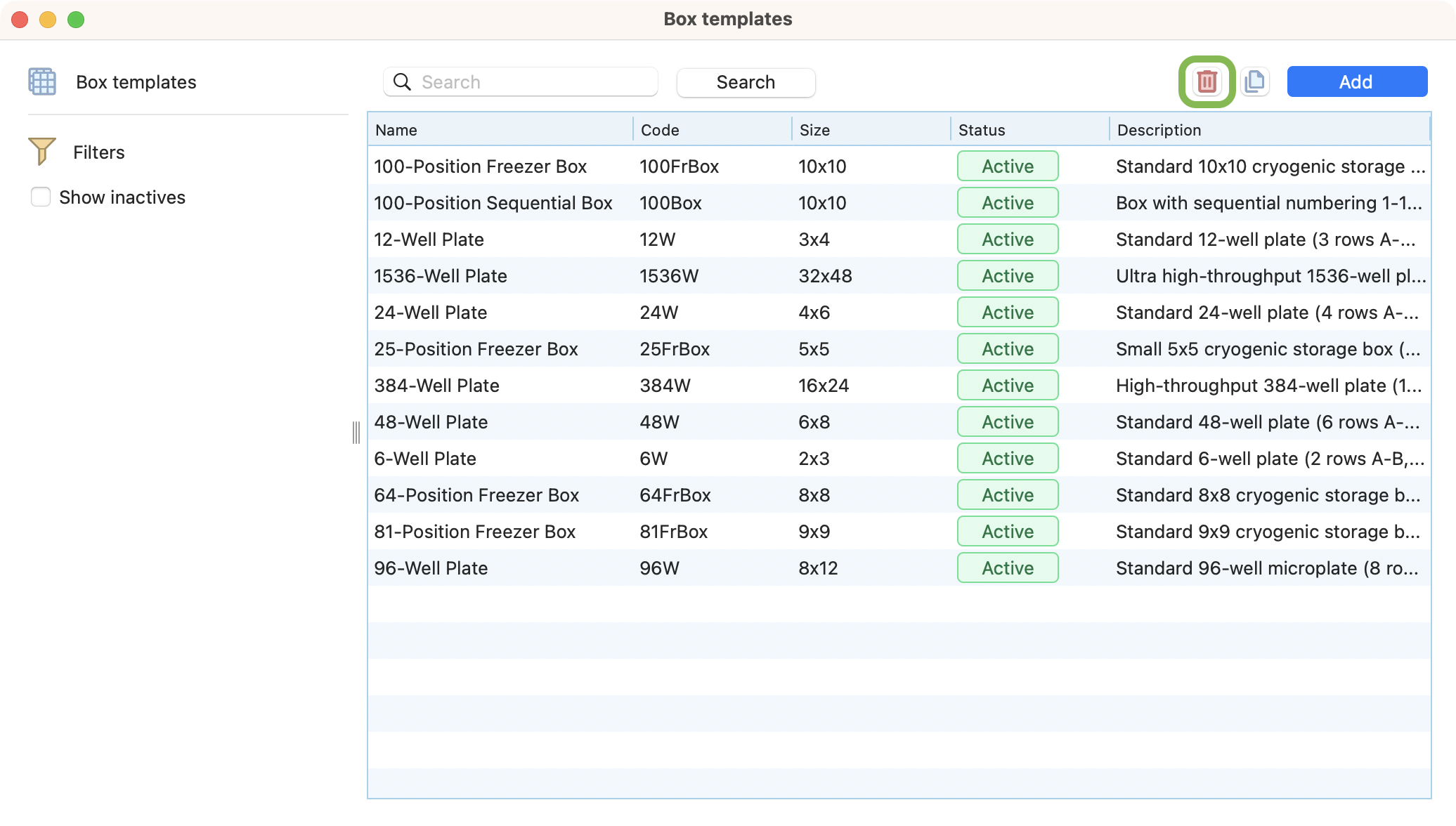 View of box templates browser, with the delete button highlighted.¶