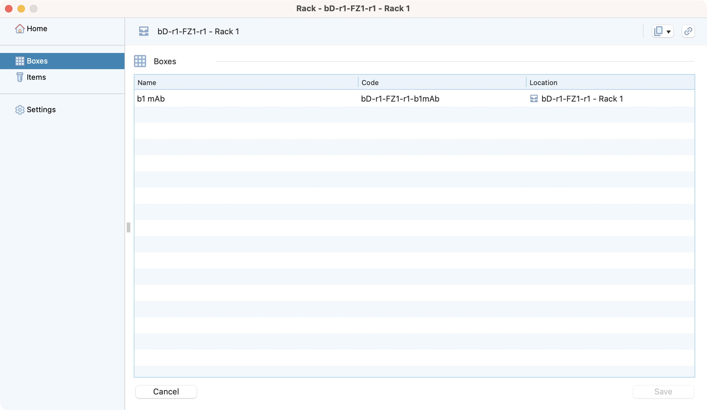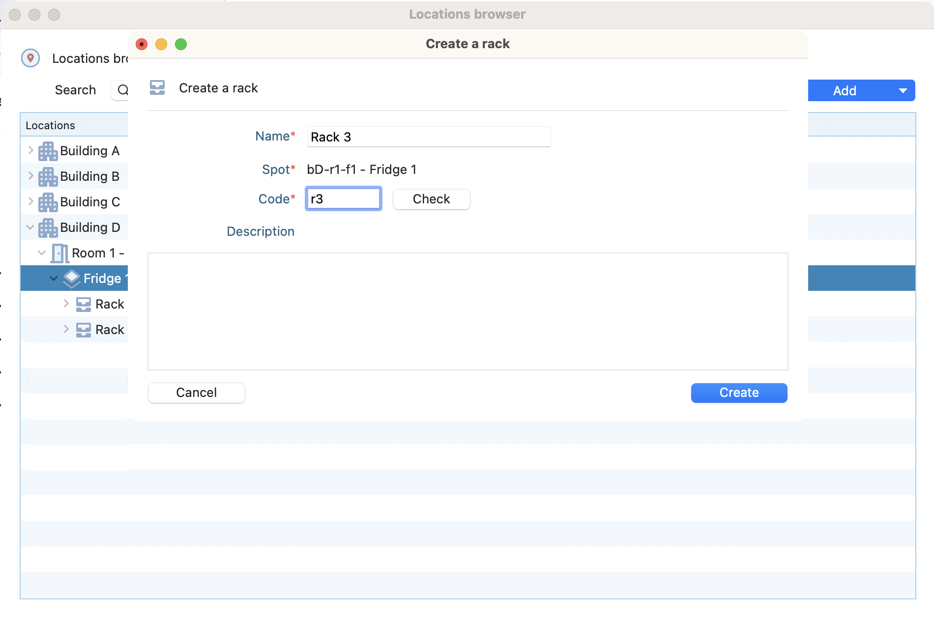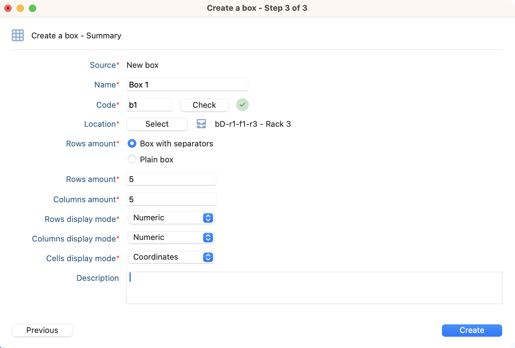 select the building, location, spot, and optionnaly the rack where you want to create a box.
