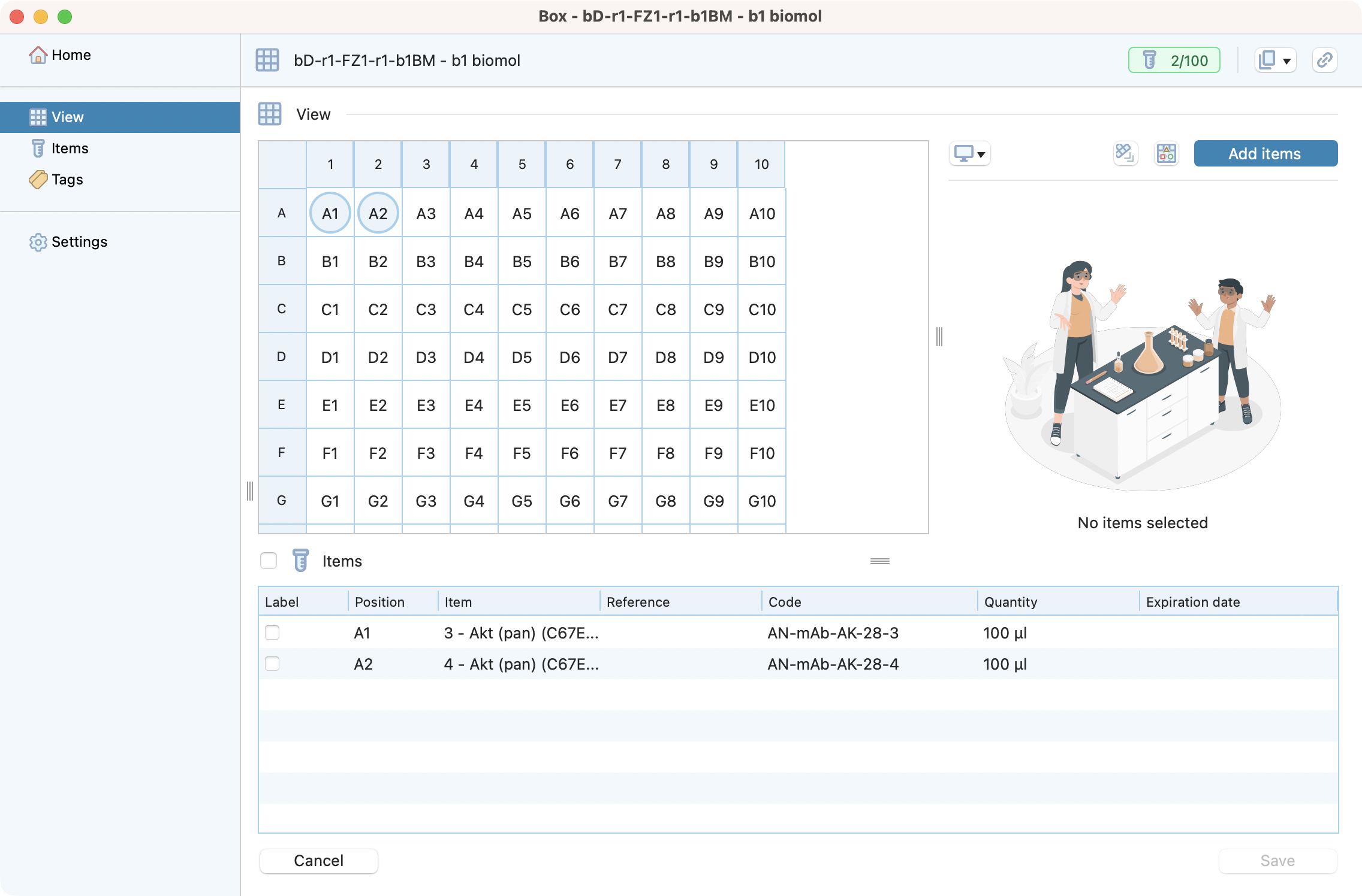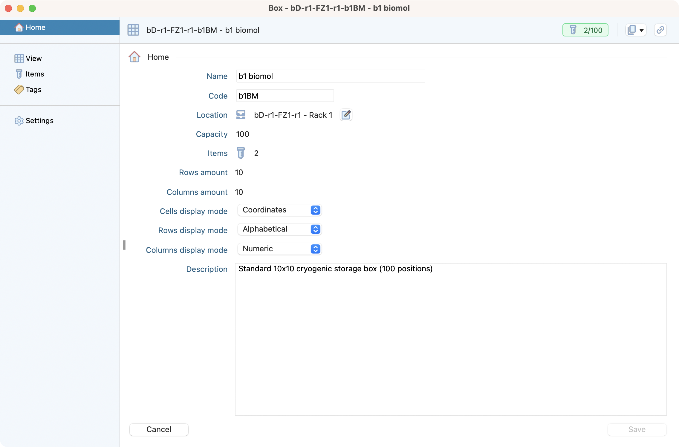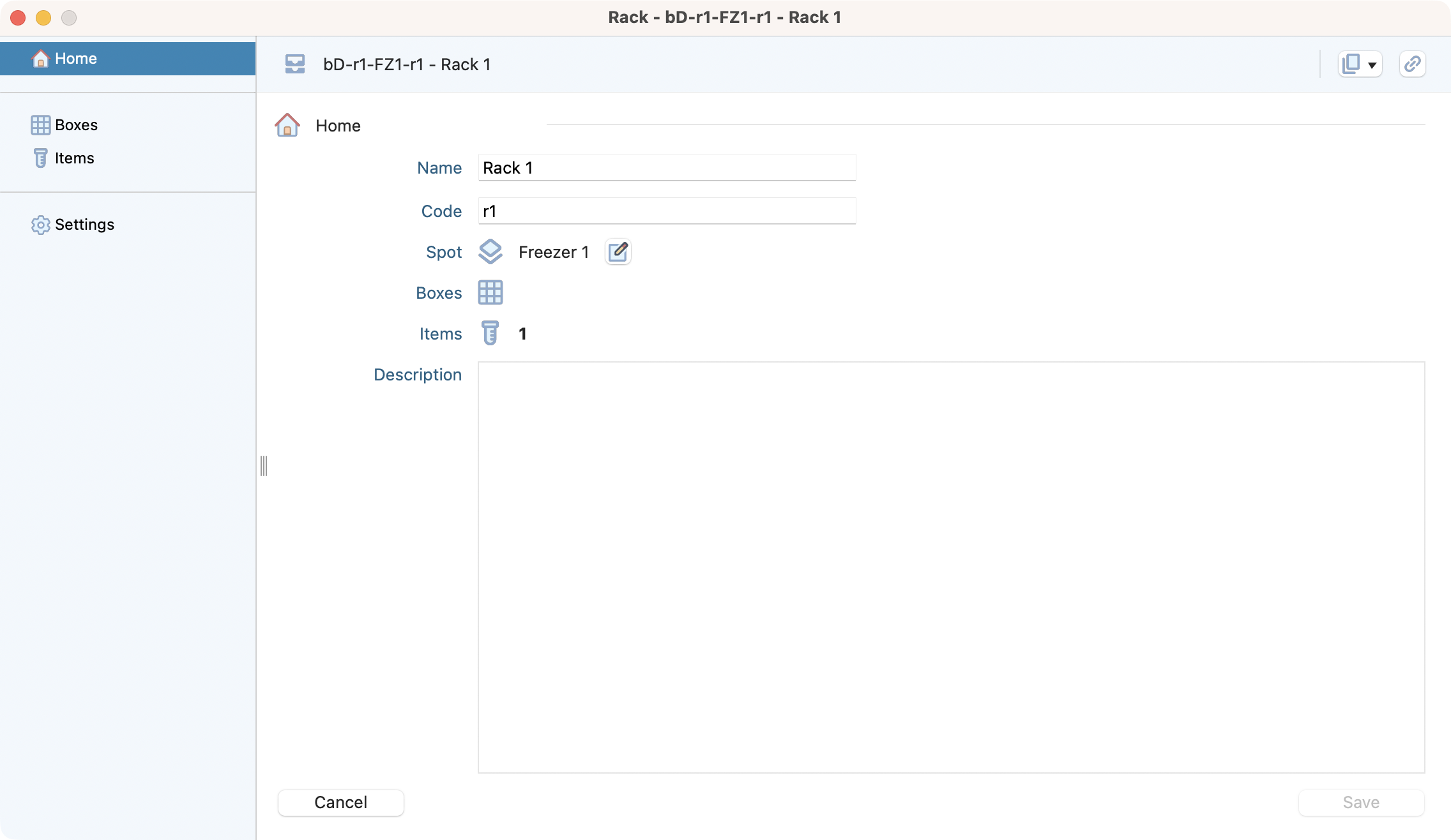 select the building, location, spot, and optionnaly the rack where you want to create a box.