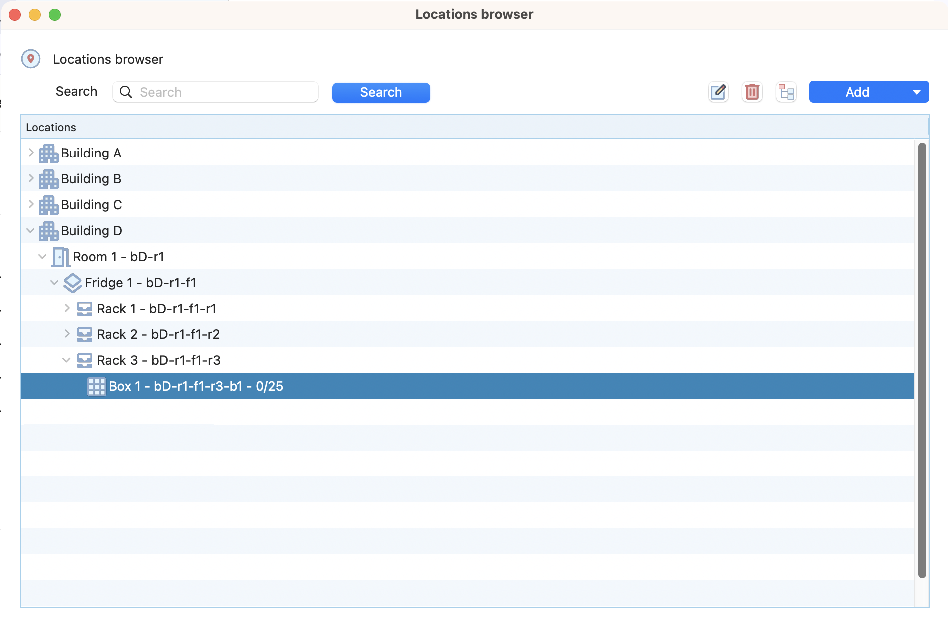 Similar to the building, double click on a location to see its details and the entities linked to it.