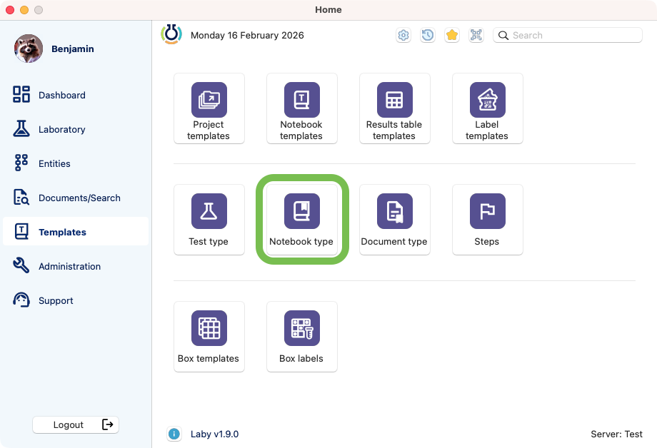 The notebook types aims to specify the different types of notebooks that can be created in Laby. It is a way to categorize notebooks and clarify the visualization.