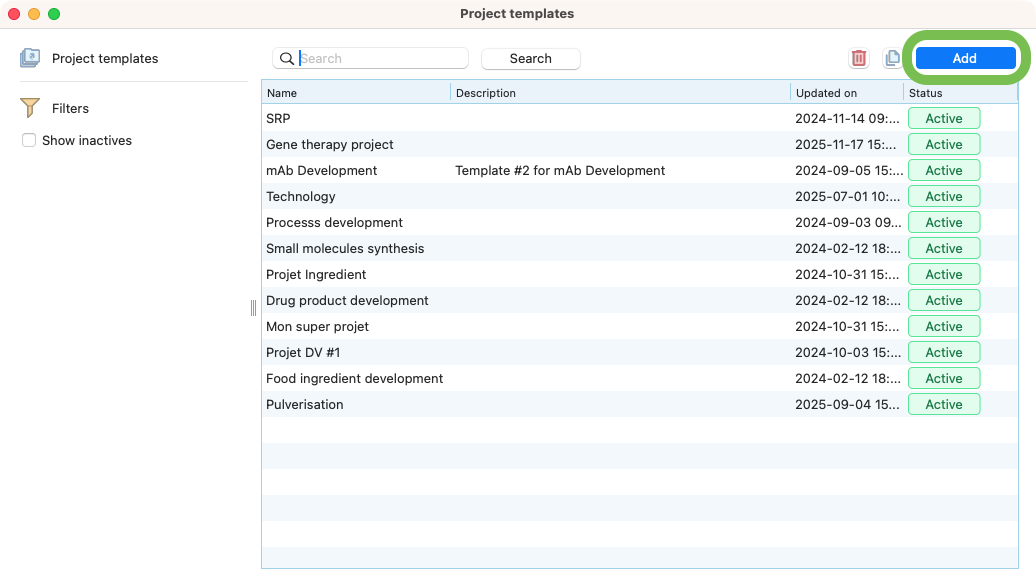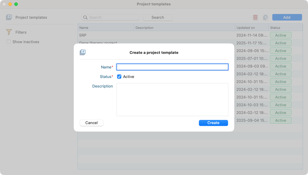 List of project templates.¶