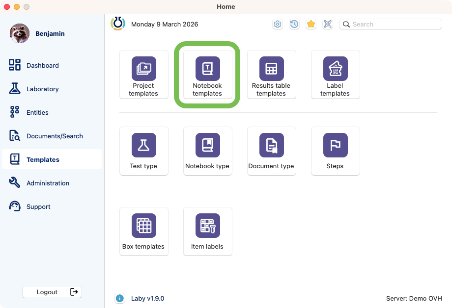 In this section, we will discover how to create and edit project templates. This module is located inside the templates section: