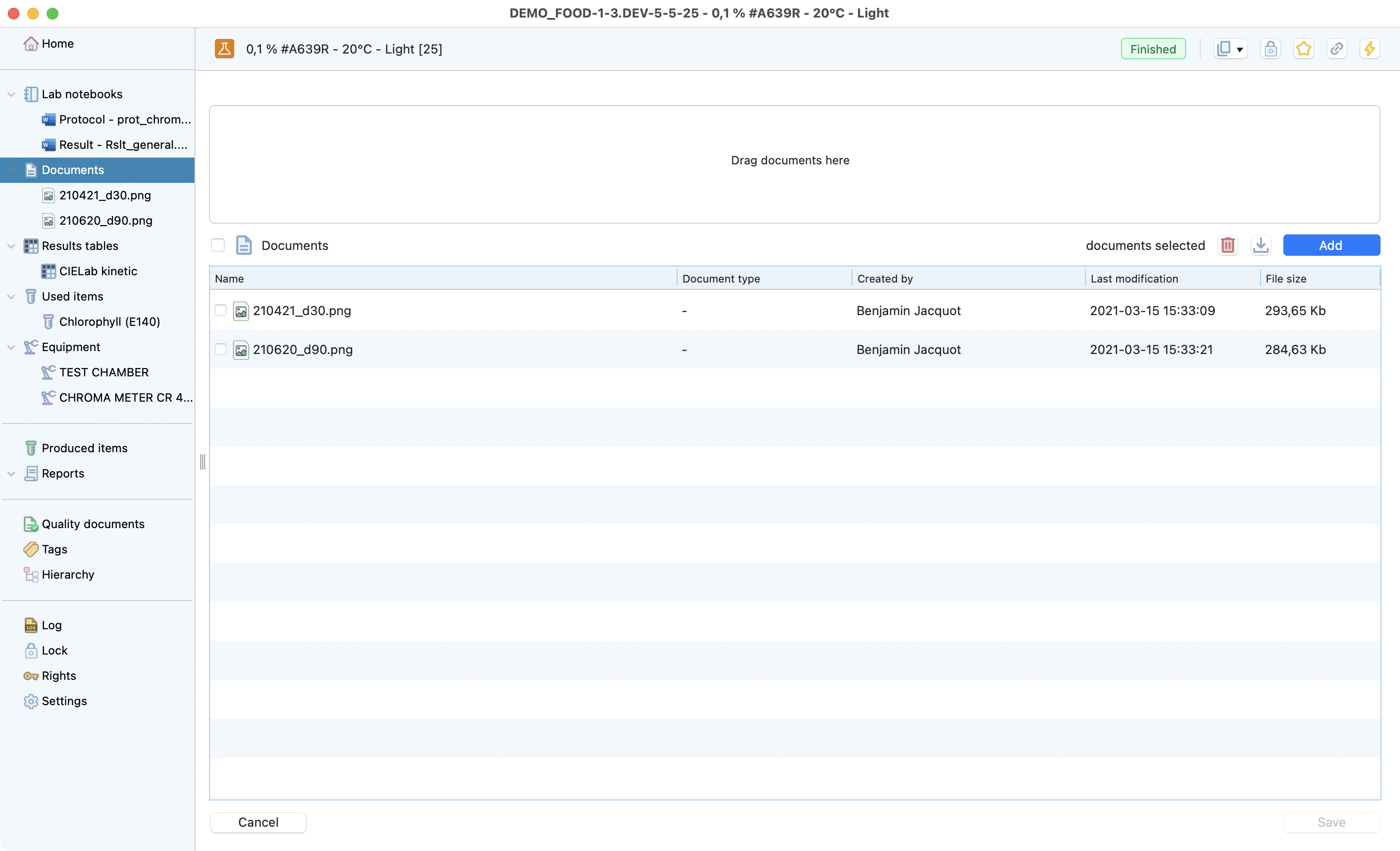 The document area in our software provides users with a centralized location to store all documents related to a lab experiment. This area is for various file types, like Excel, Word, images, PDFs, PowerPoint, SnapGene, graphpad, Marvinsketch, Python, MP4s, etc. By using it, users can organize and manage all their experiment data in one place. This ensures that data related to a particular experiment is always easily accessible and can be located quickly when needed. So, users no longer have to worry about scattered data or missing files.