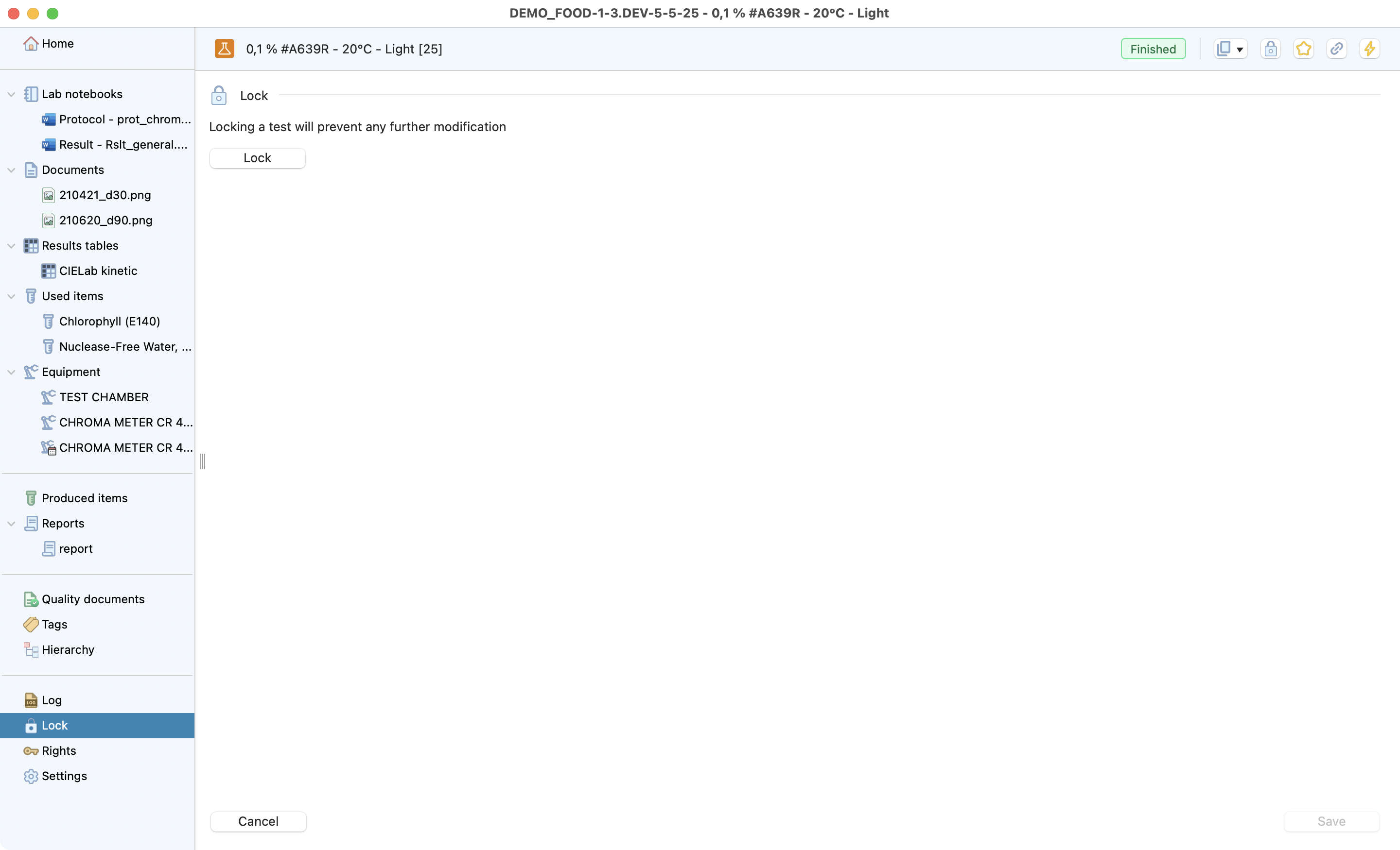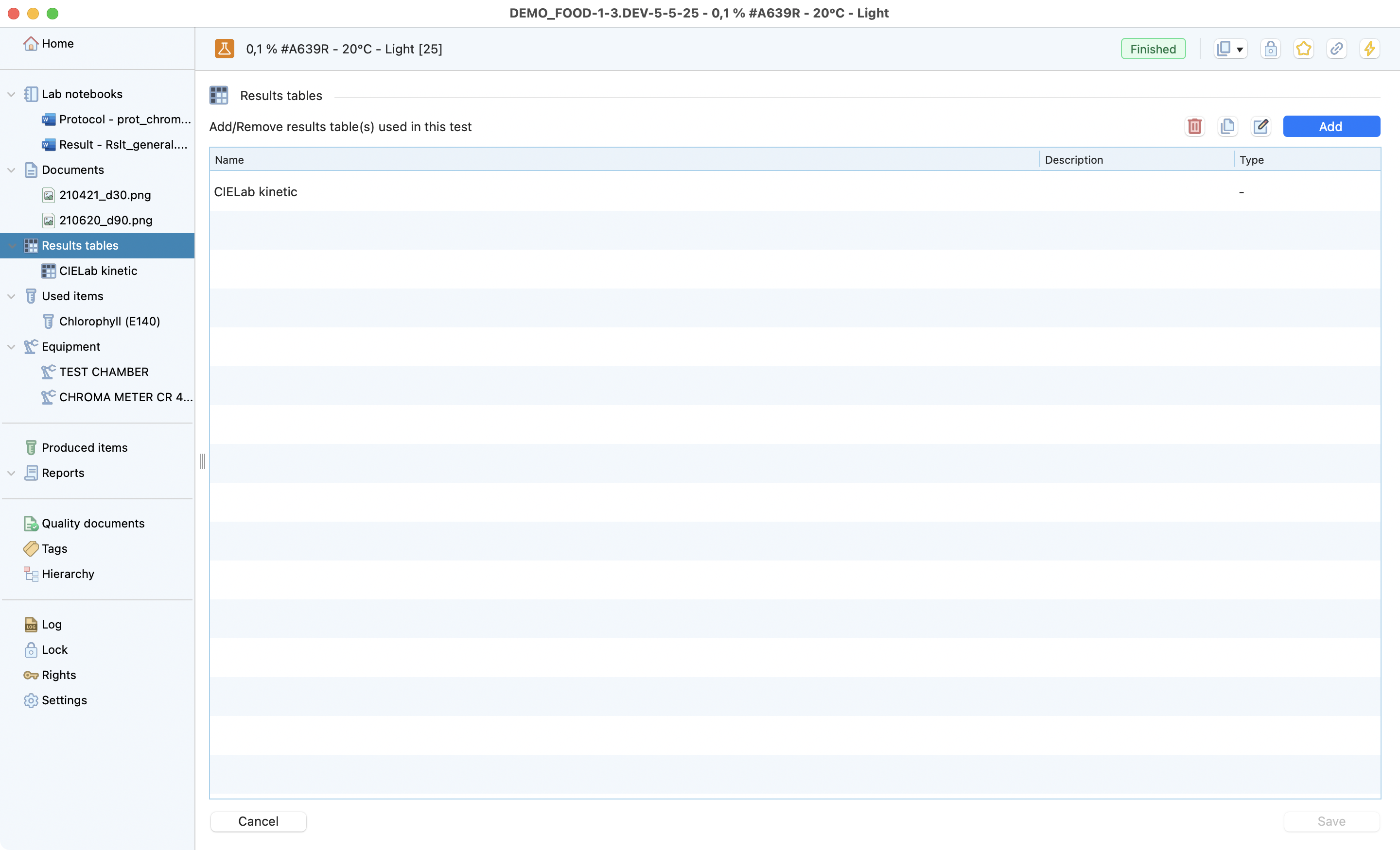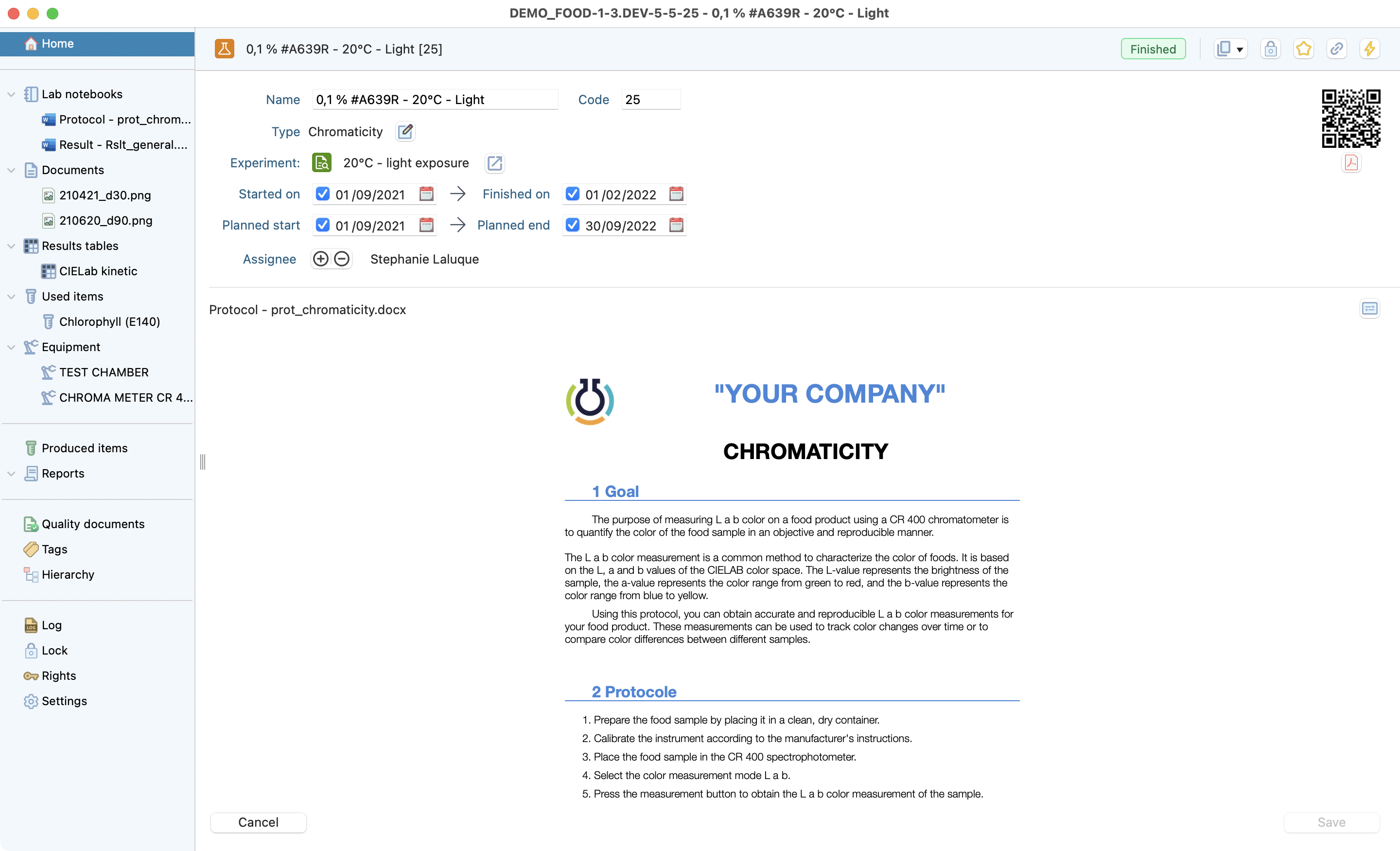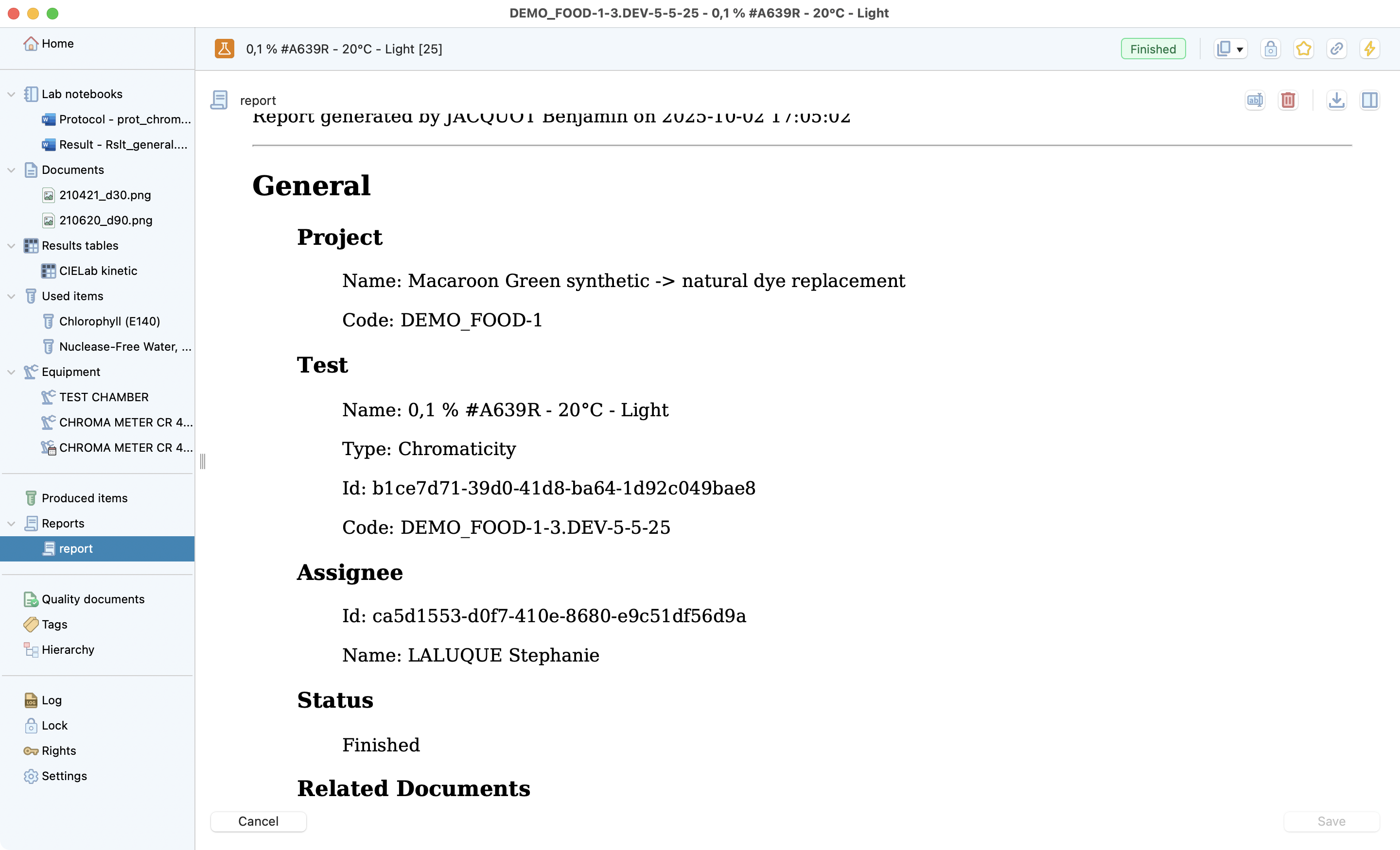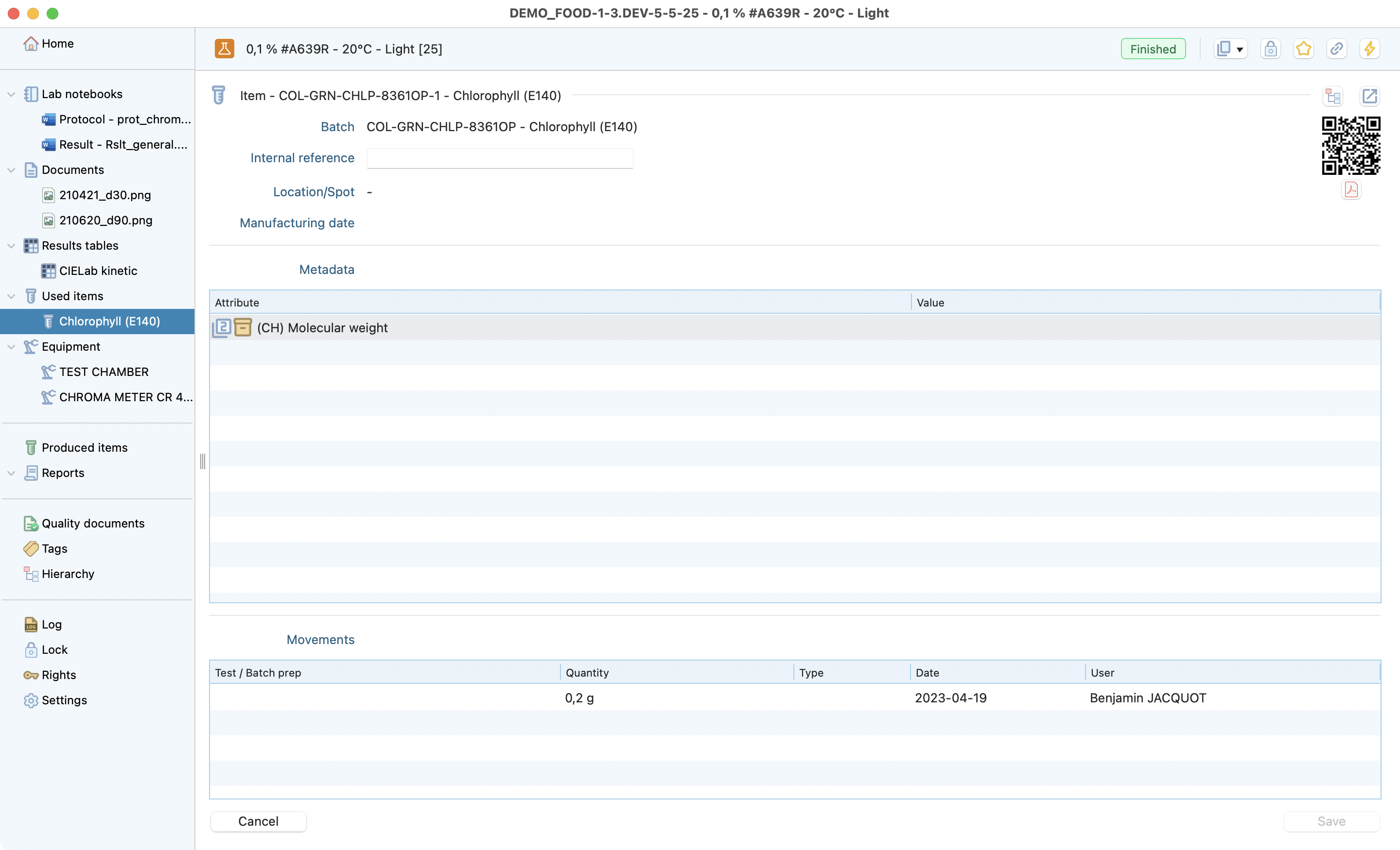 The test is the lowest level of the research project dedicated to recording all the information from a test conducted in the laboratory. Laby has different sections that make it easy to record all the useful information and find it at a glance.