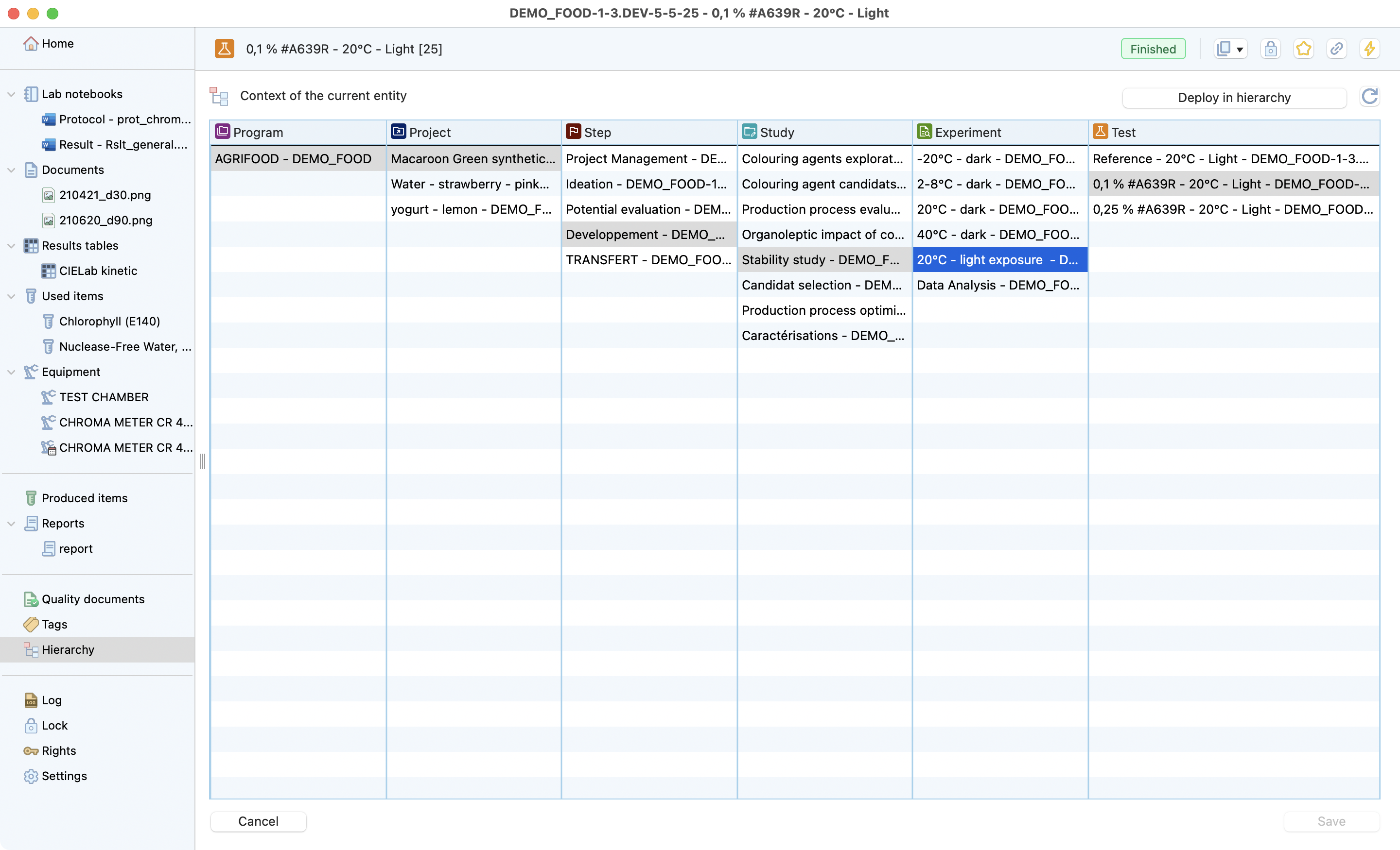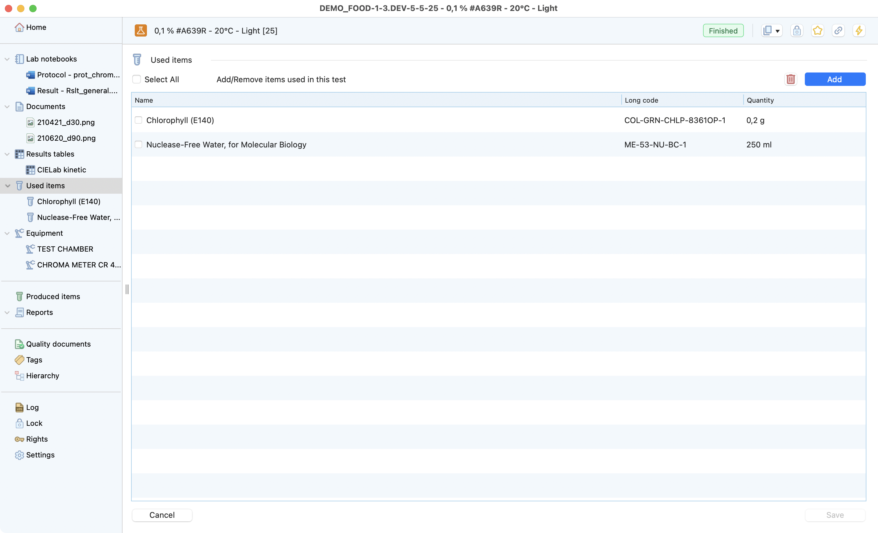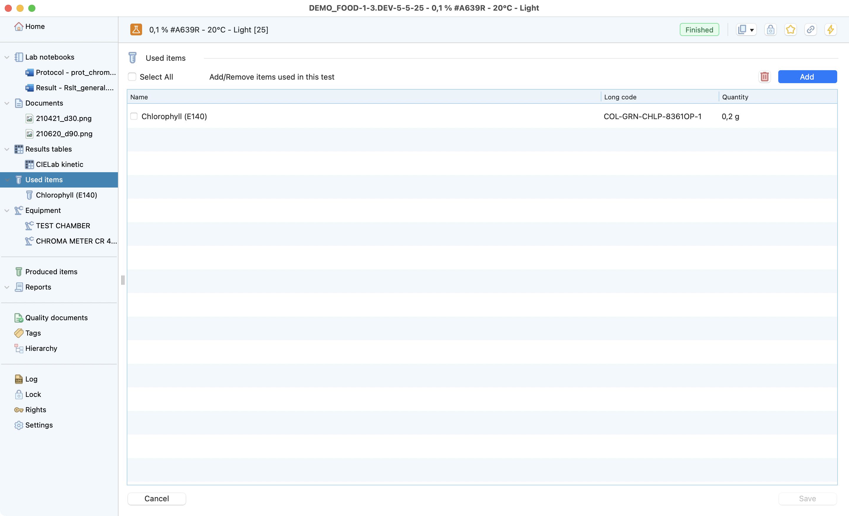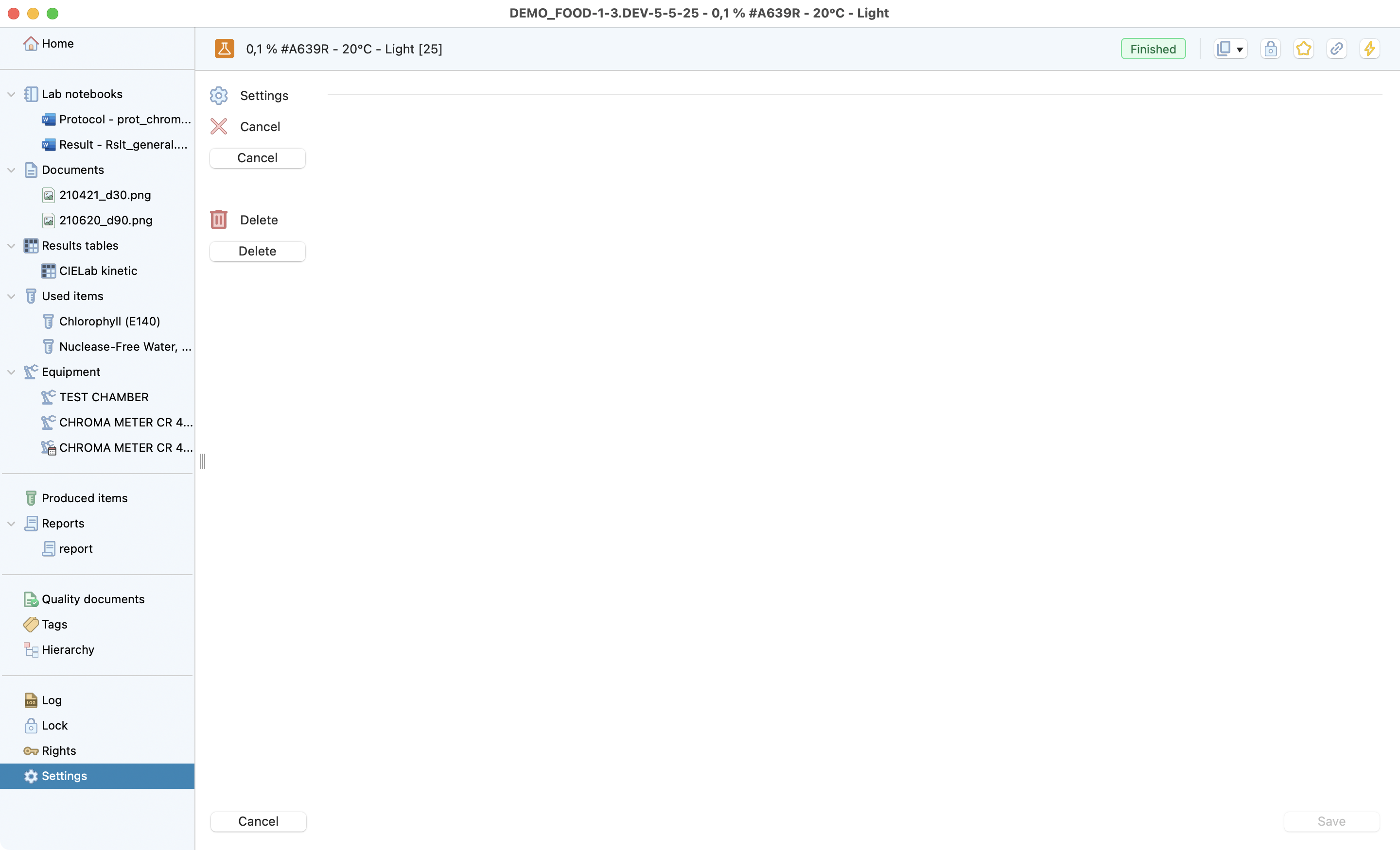 The test is the lowest level of the research project dedicated to recording all the information from a test conducted in the laboratory. Laby has different sections that make it easy to record all the useful information and find it at a glance.