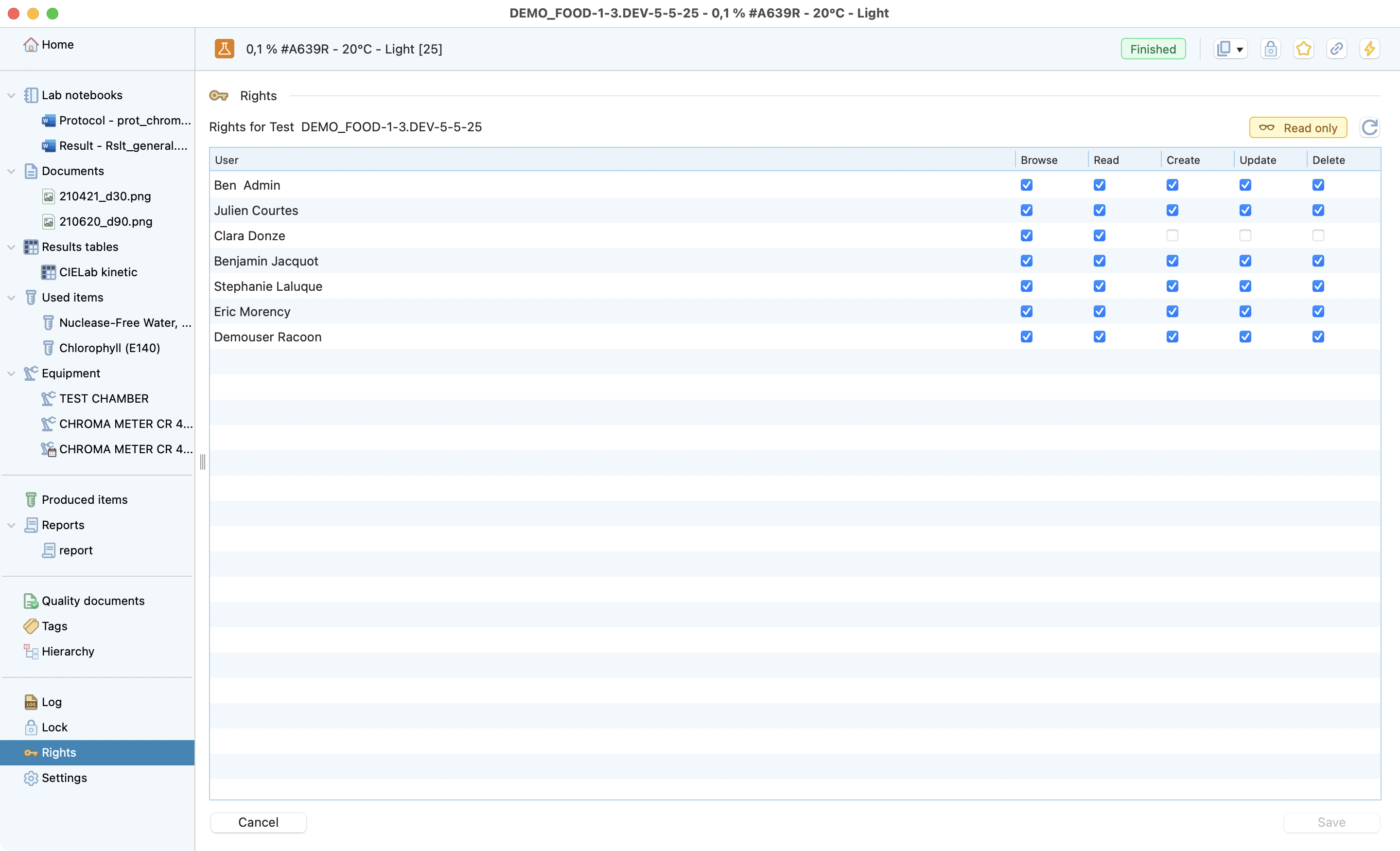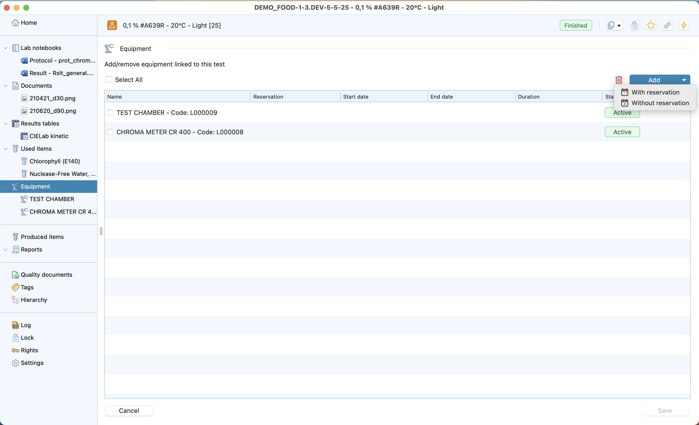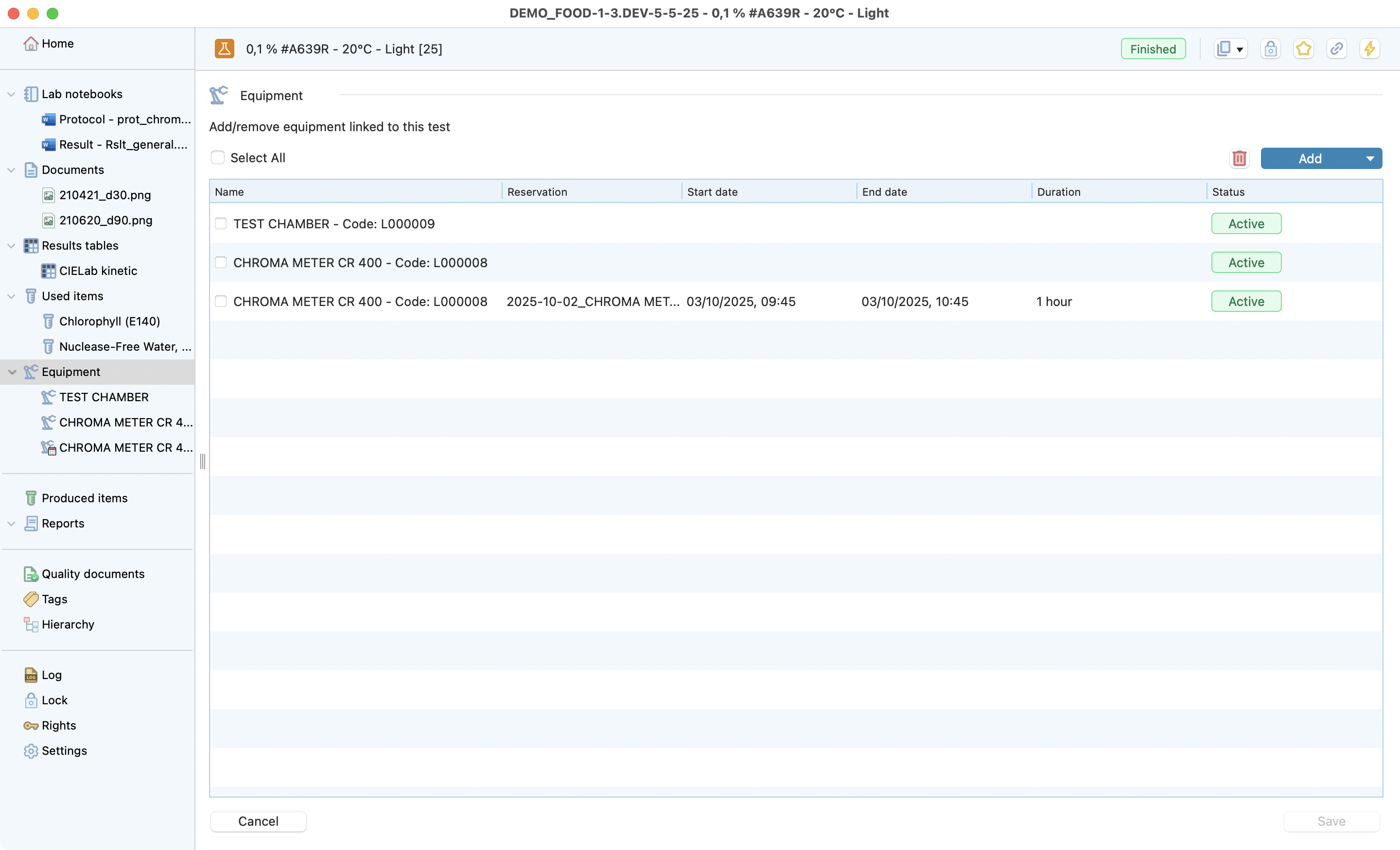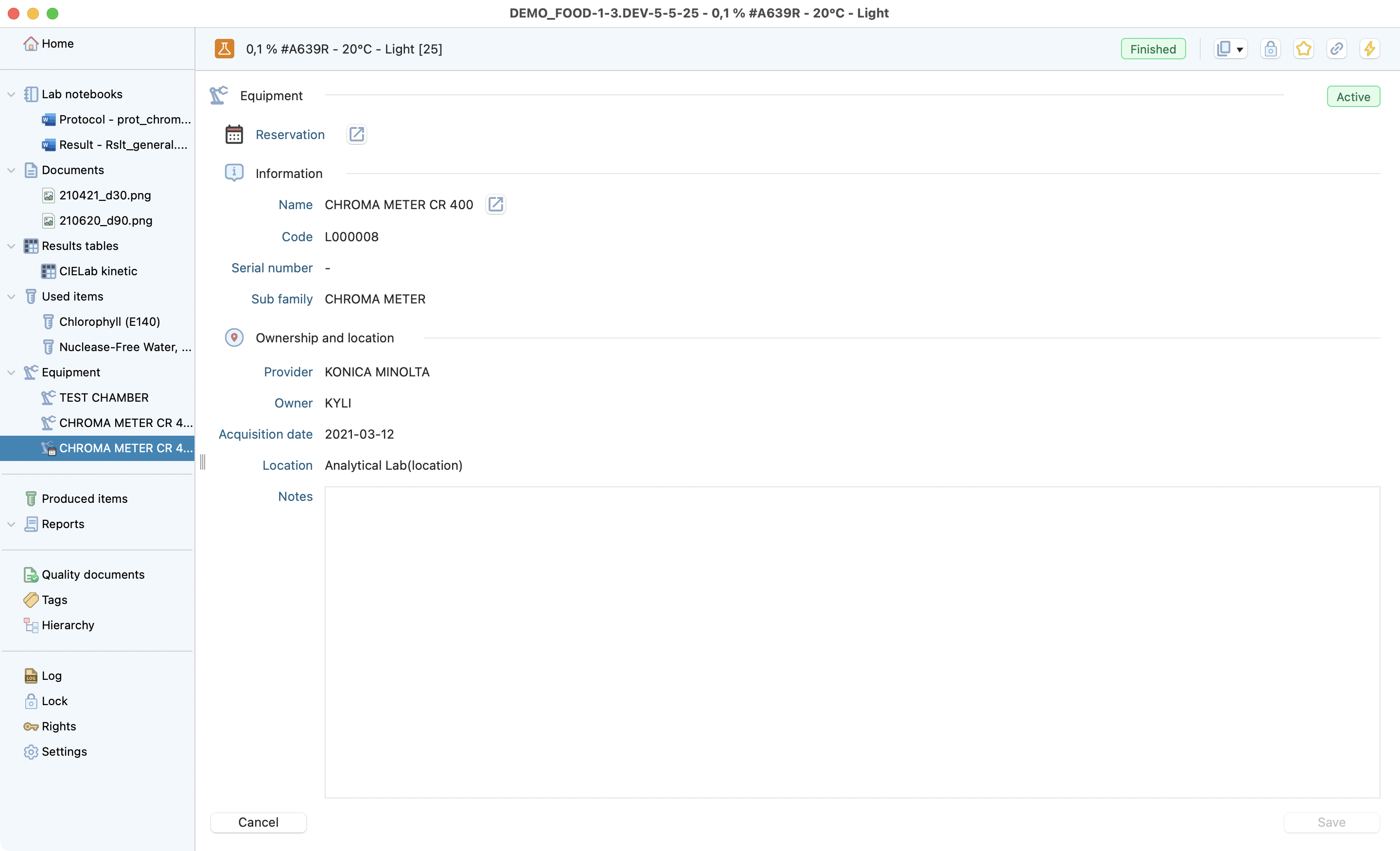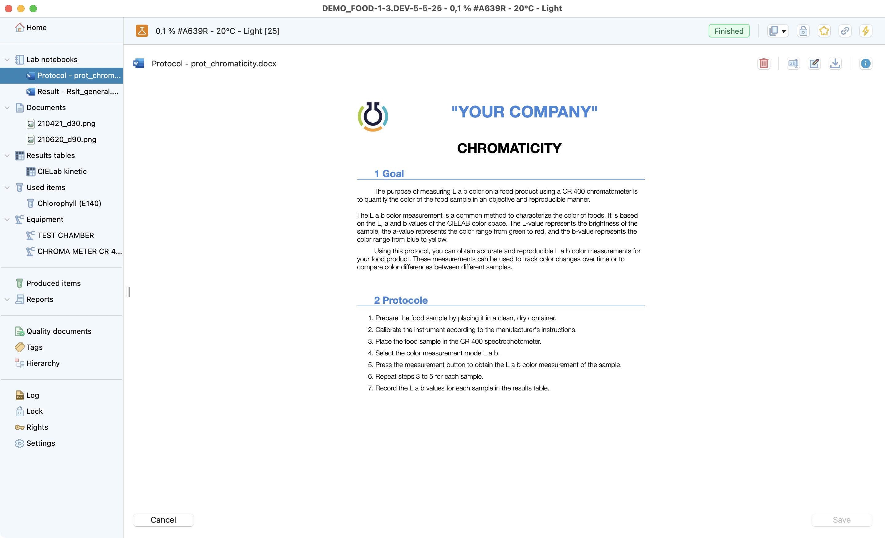 The test is the lowest level of the research project dedicated to recording all the information from a test conducted in the laboratory. Laby has different sections that make it easy to record all the useful information and find it at a glance.