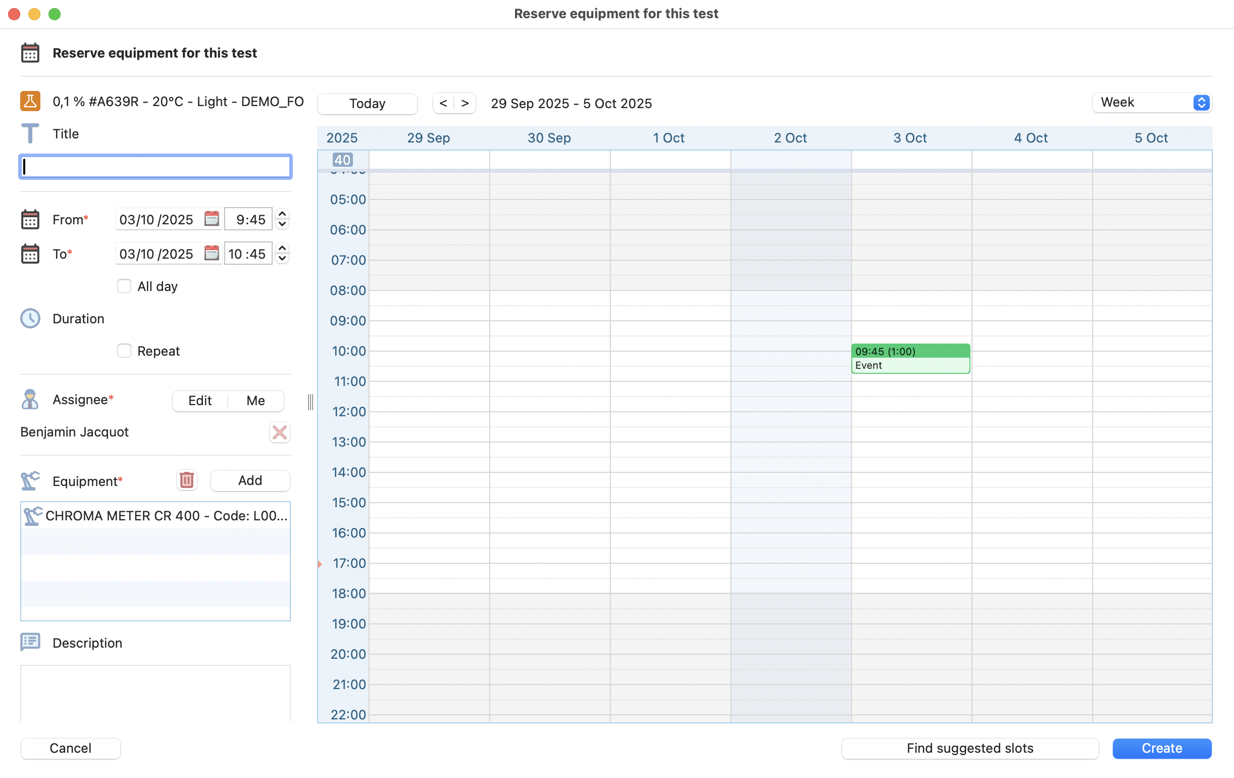 Similarily to the items, you can specify which equipment has been used, and set your traceability. Here is the 2 steps needed to link an asset to your test: