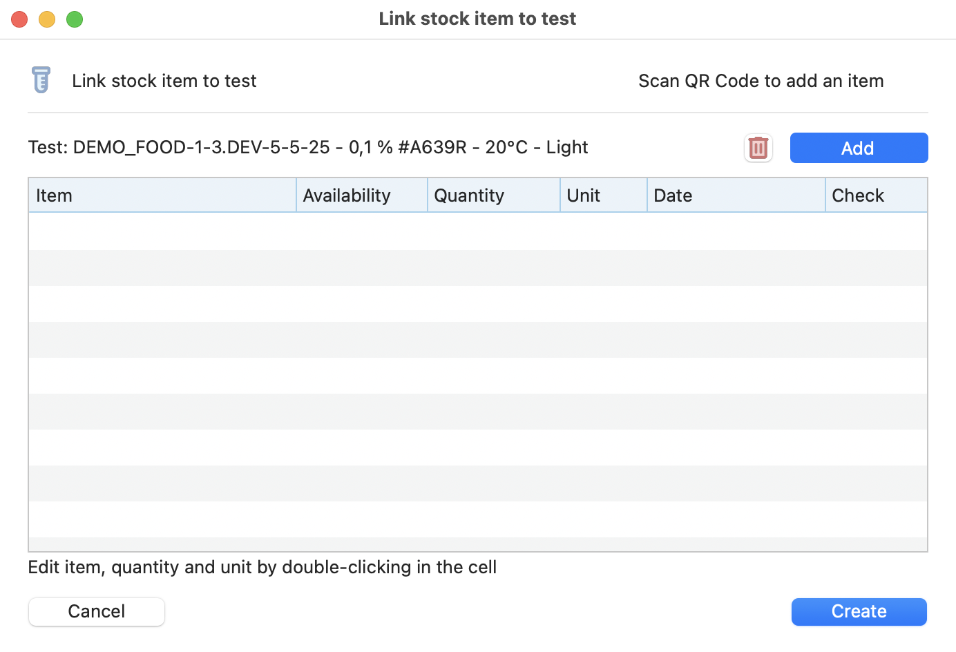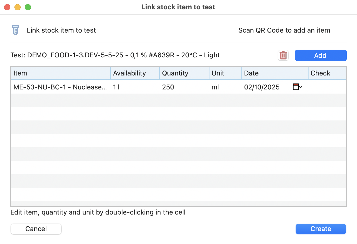 After having clicked on the Add button, you can directly scan the QR code of the item, or open the items you want to add to your test on the picker.