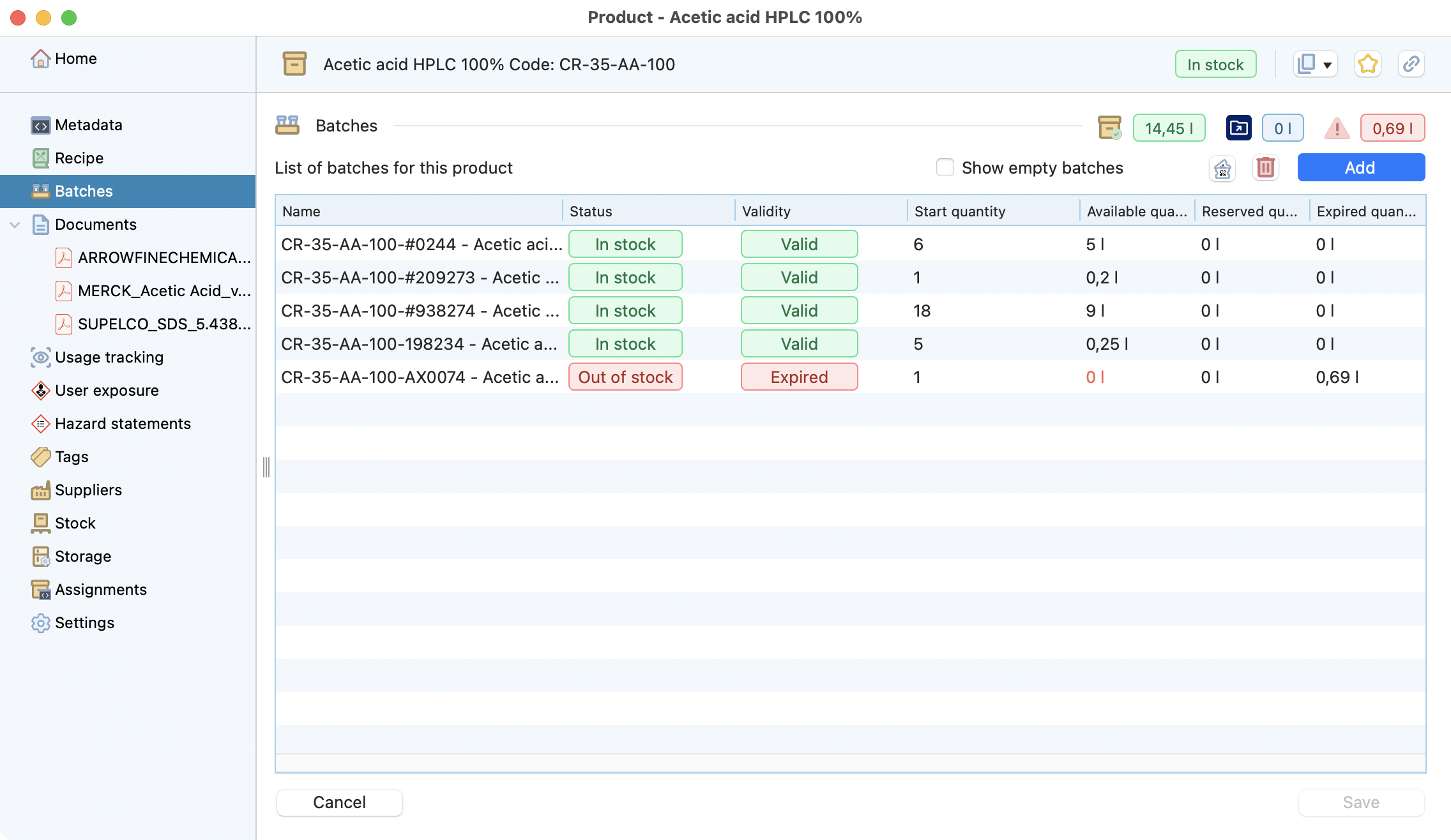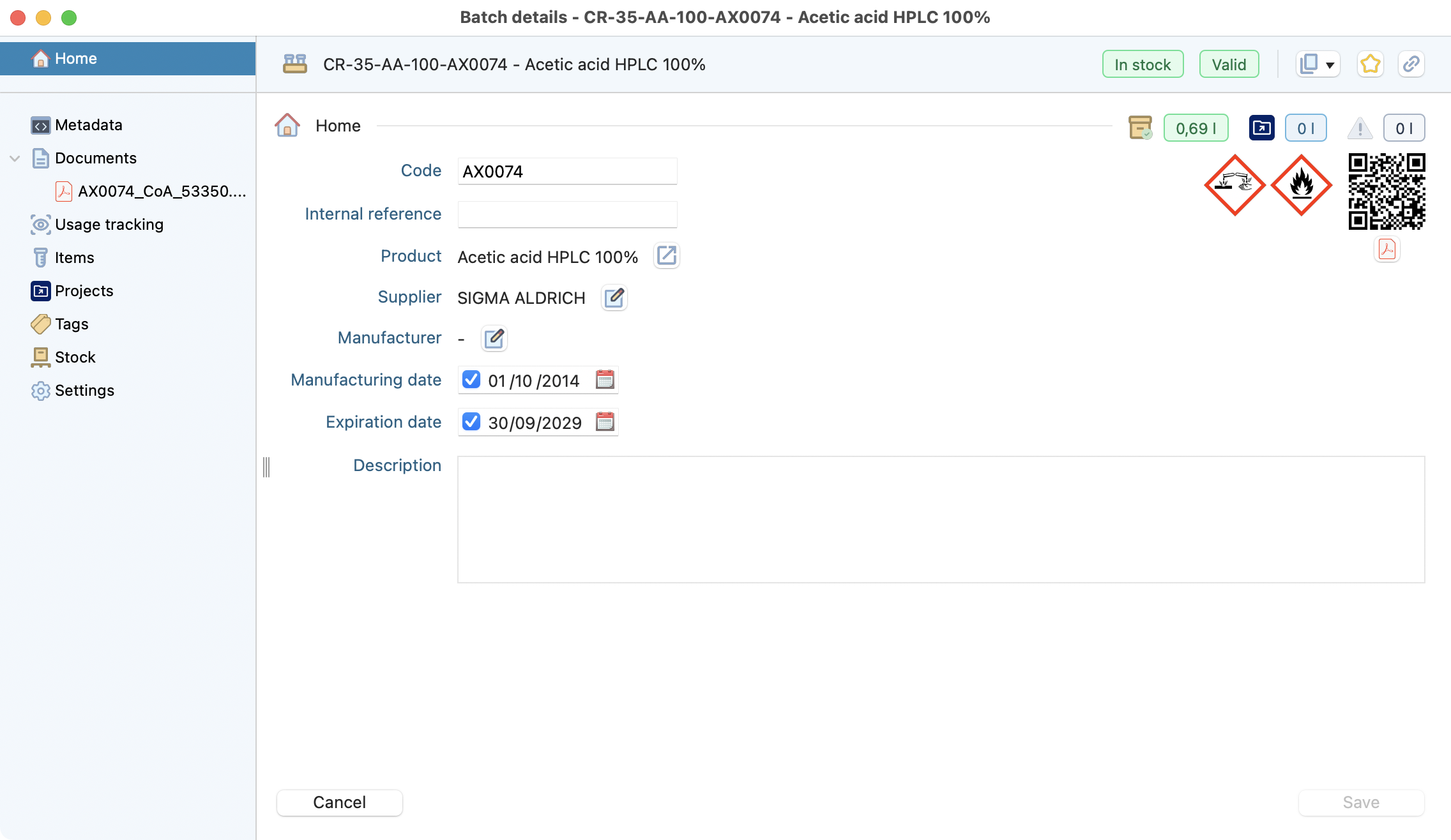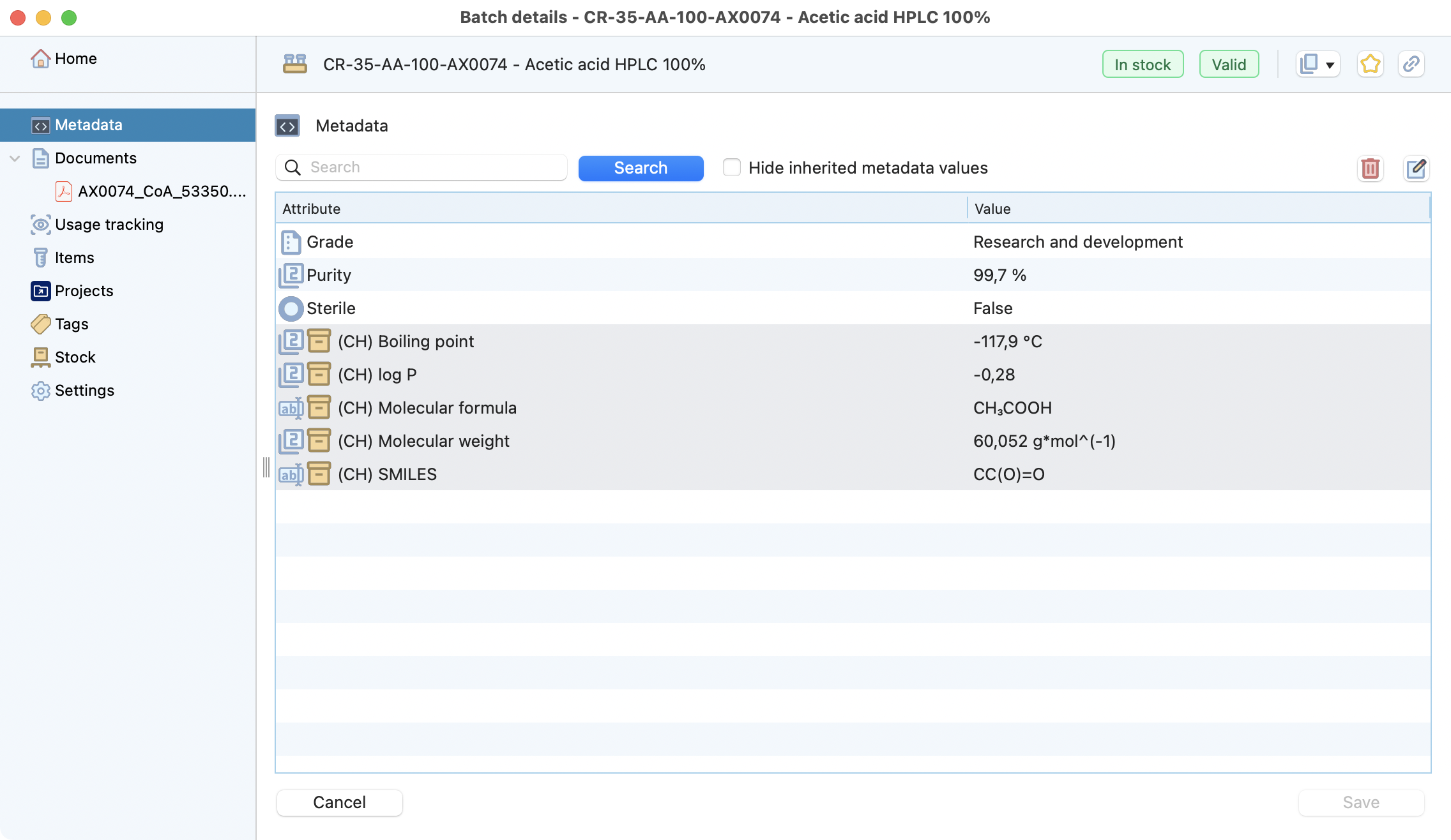 Keep track of the most important products used in your experiment. Store your batch-related info, like production date and Certificate of Analysis. Identify all linked items in a second.