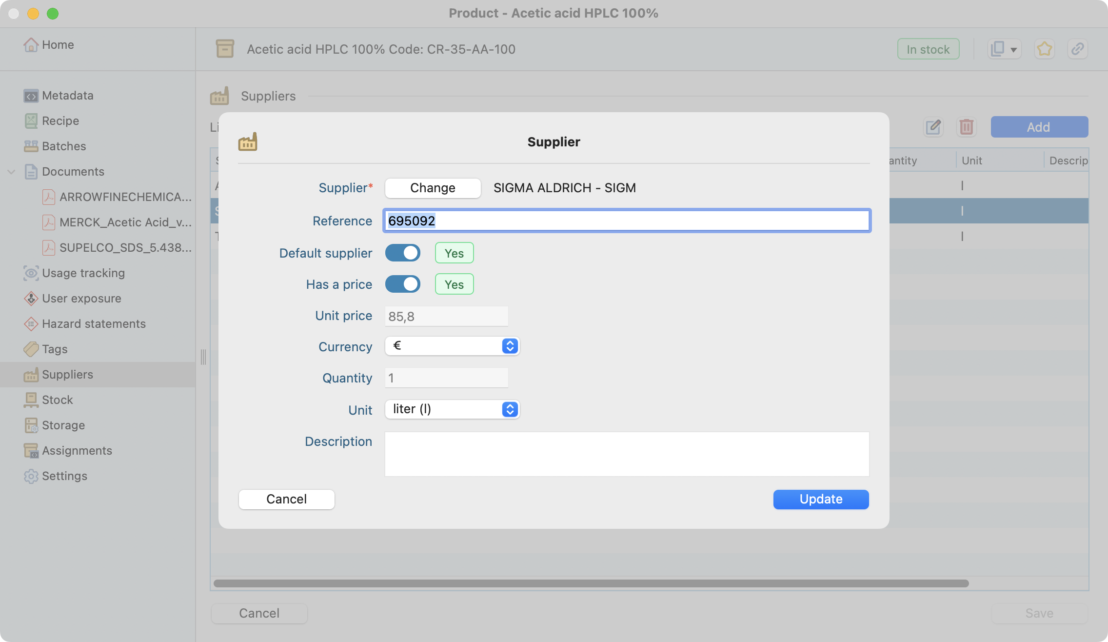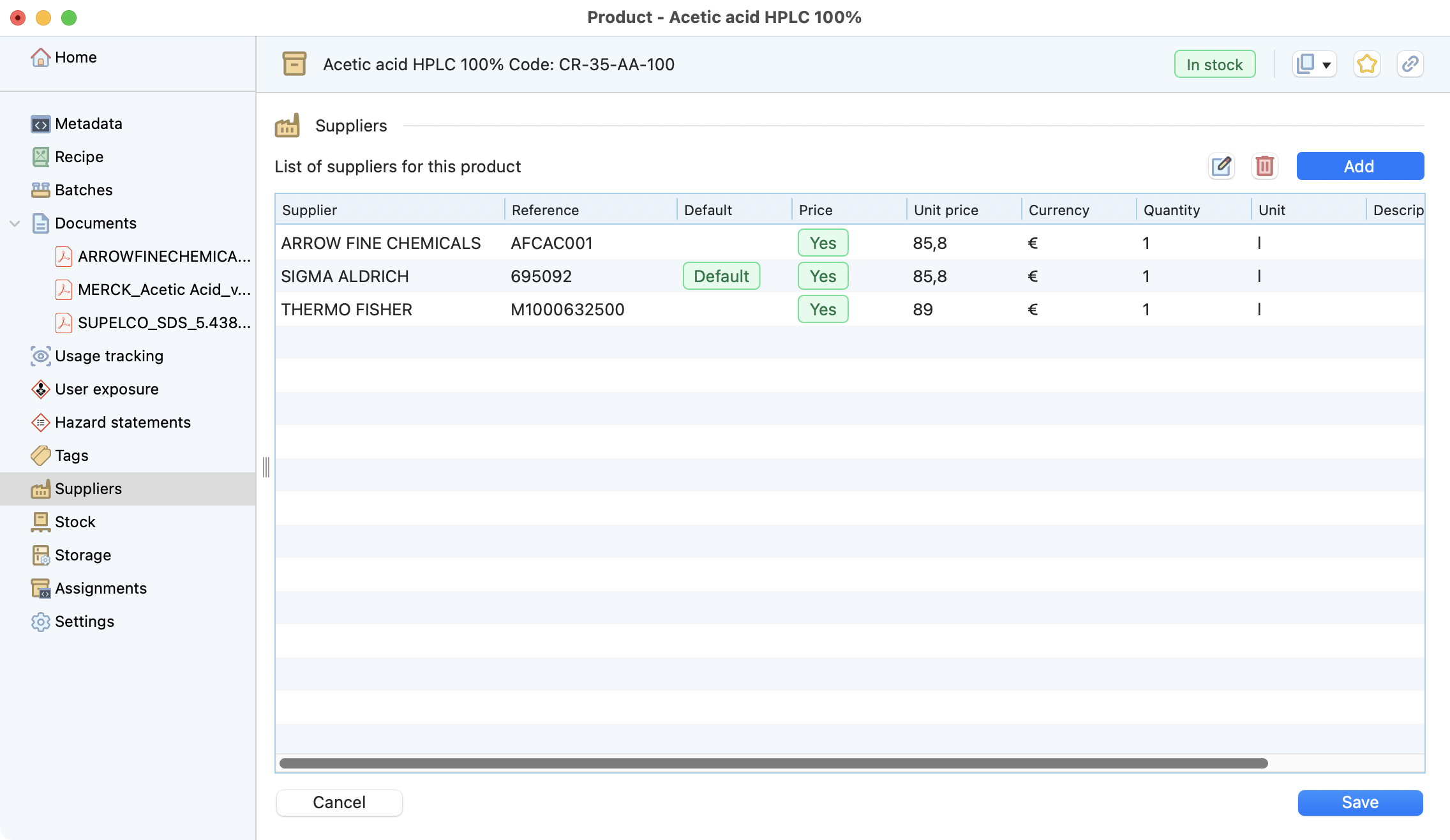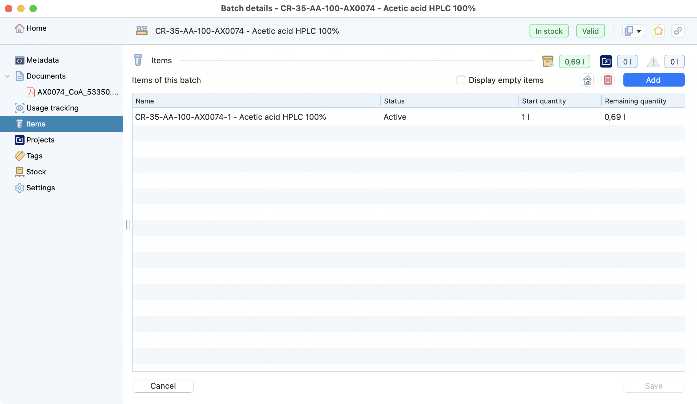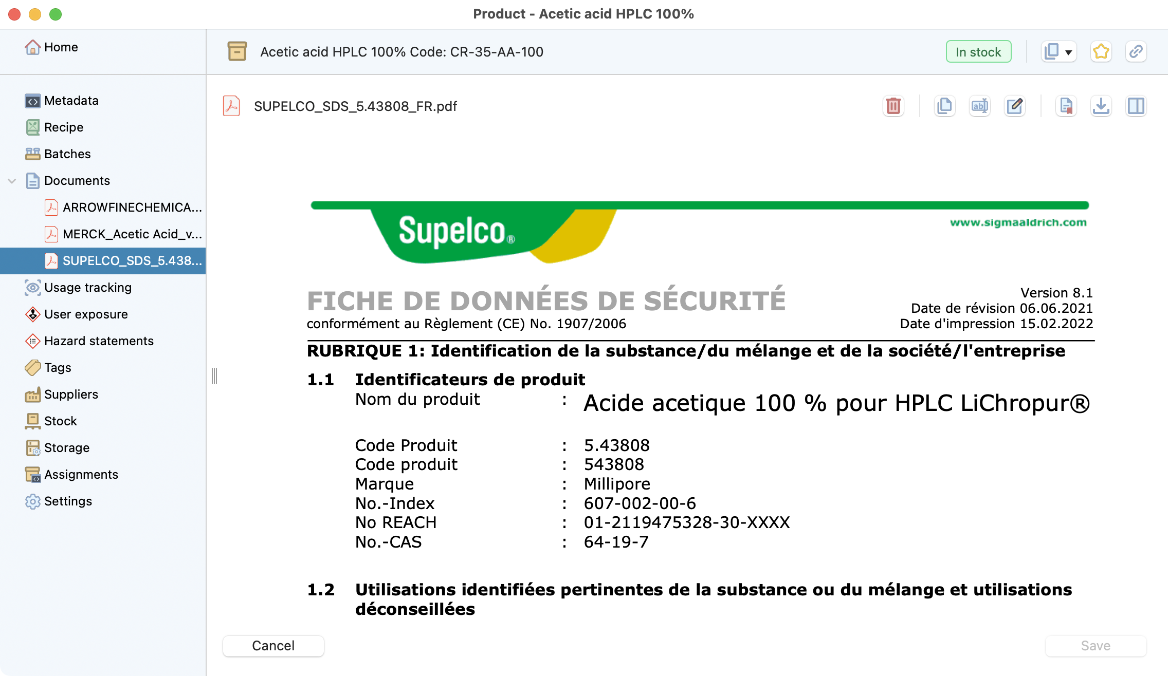 Keep track of the most important products used in your experiment. Store your batch-related info, like production date and Certificate of Analysis. Identify all linked items in a second.