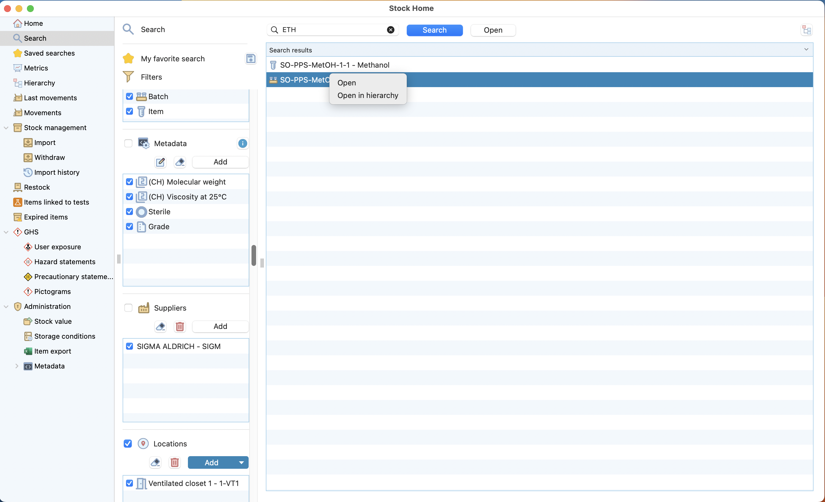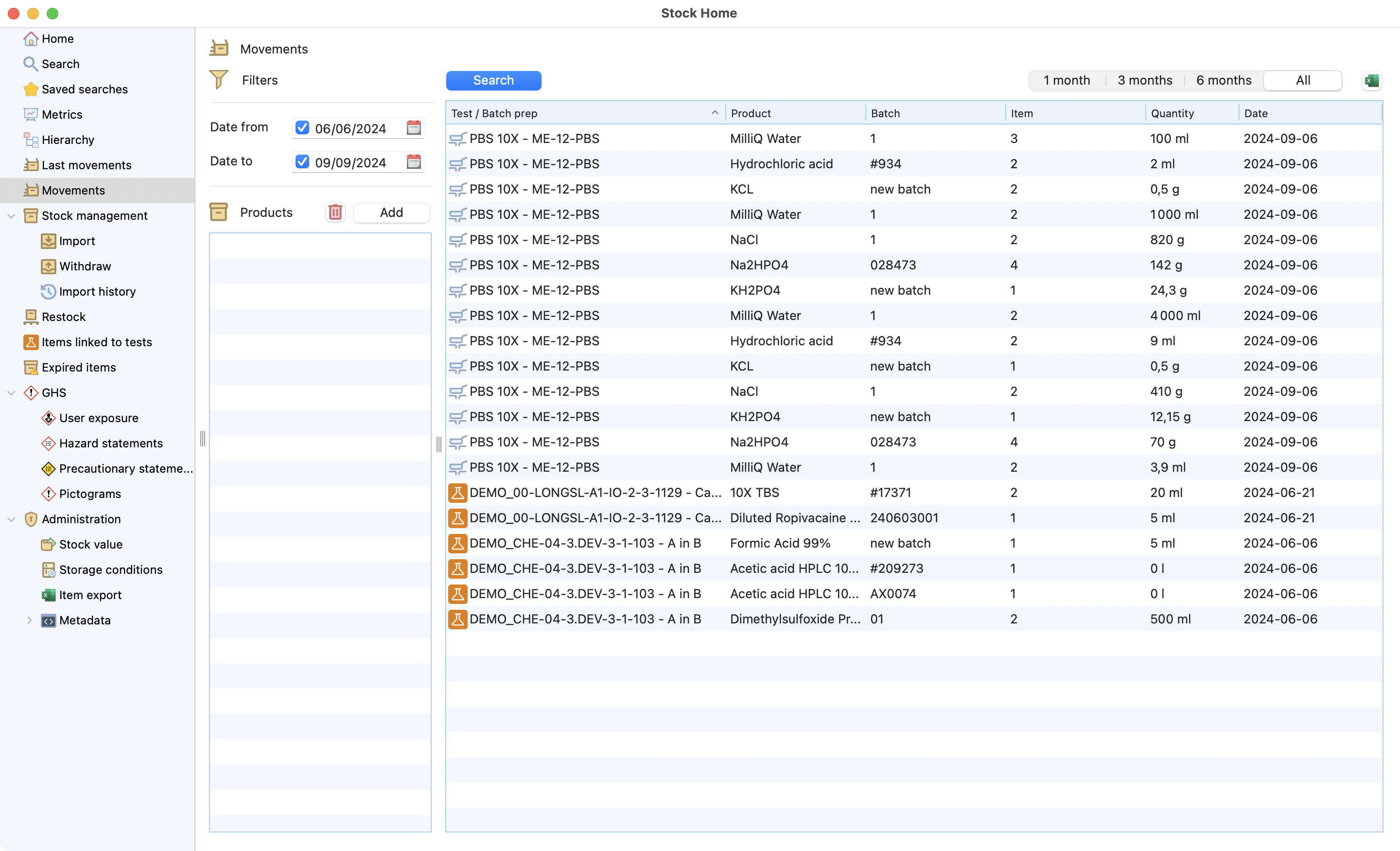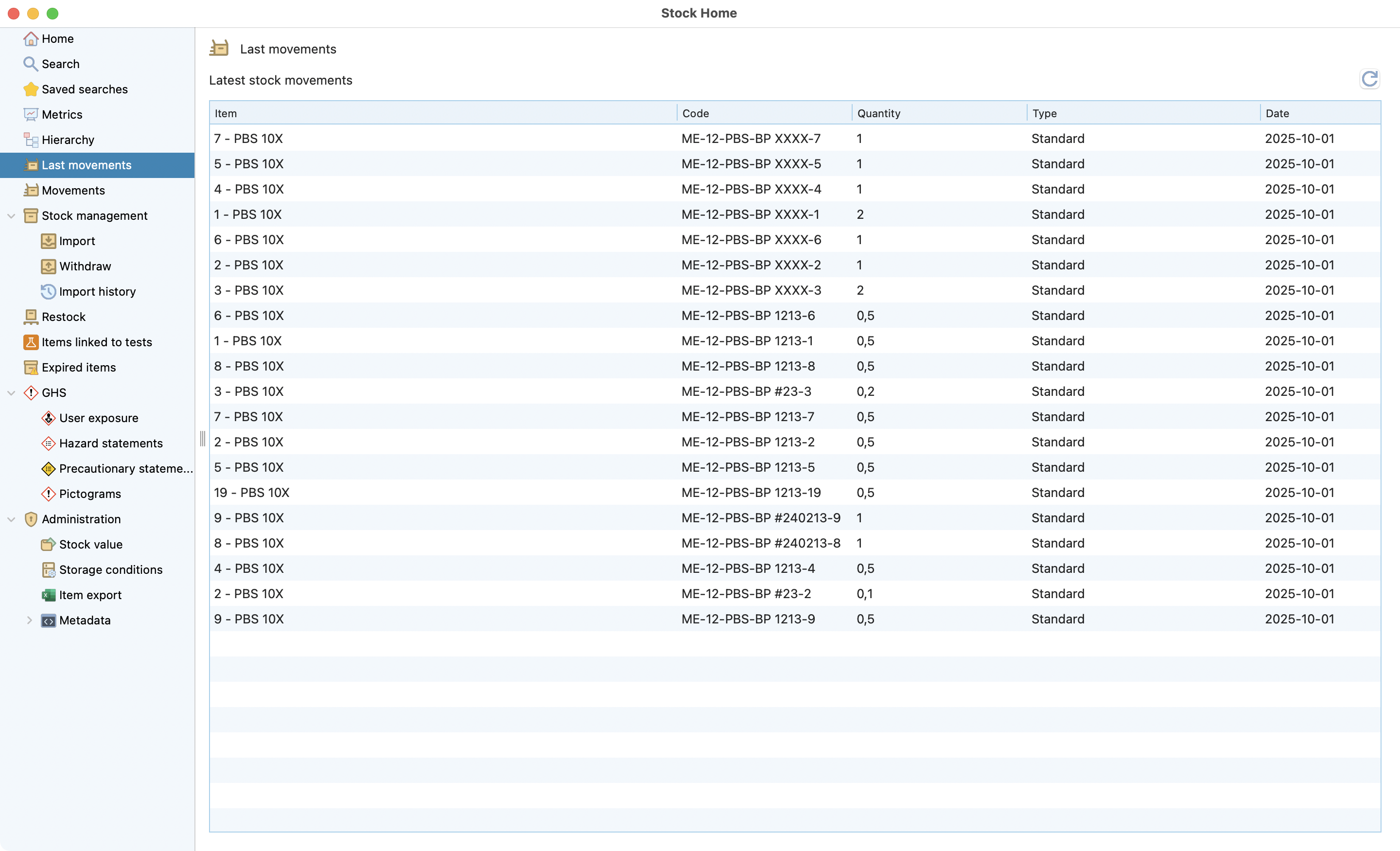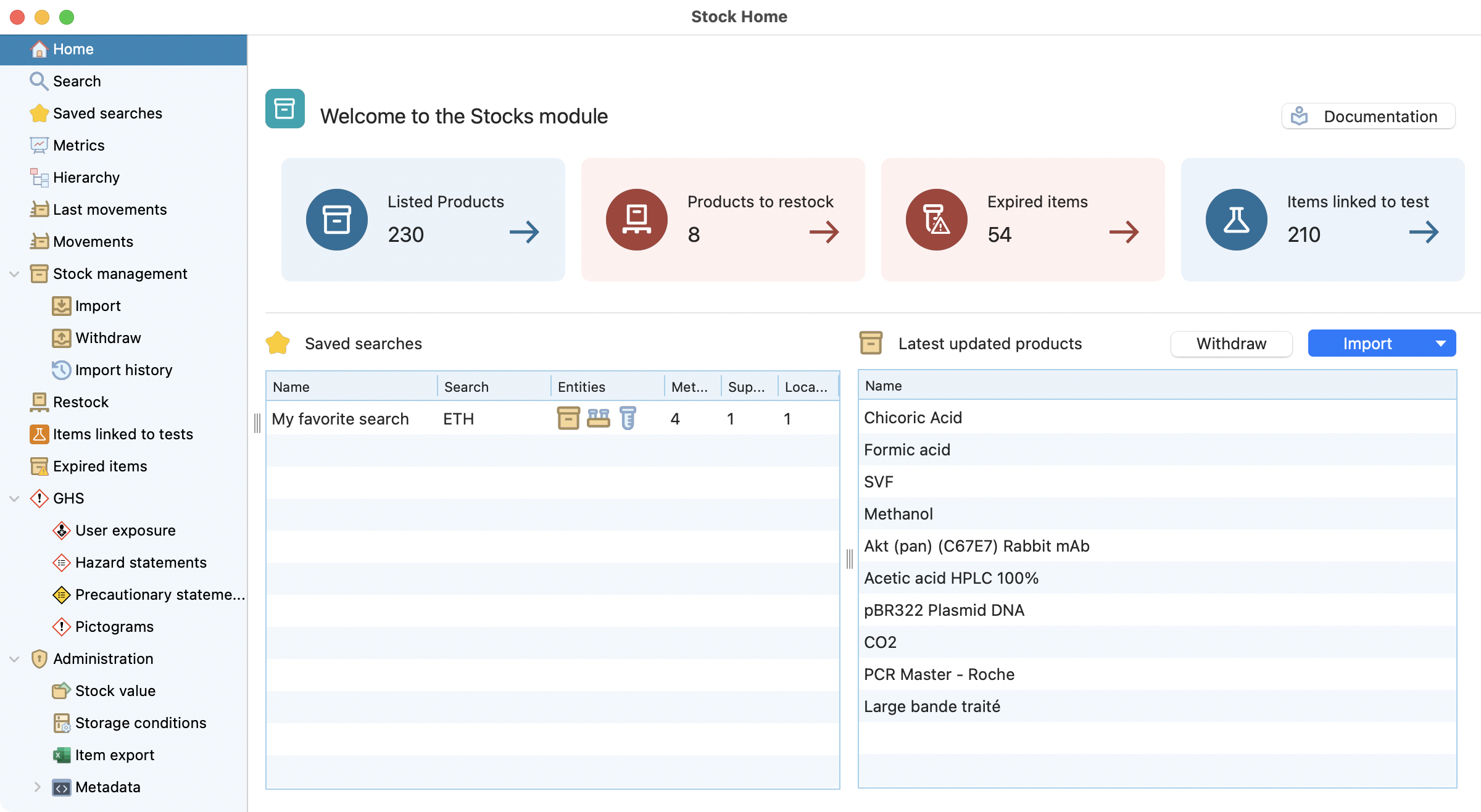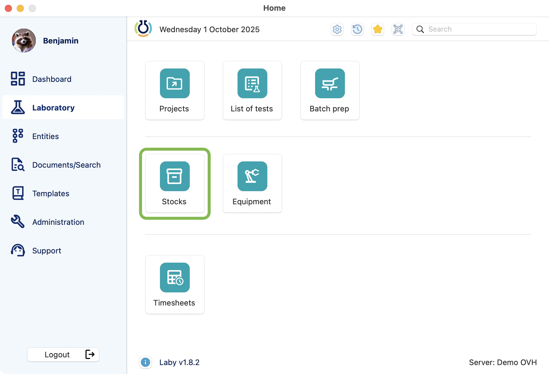 You can access the stock module by clicking on the icon in the laboratory menu.
