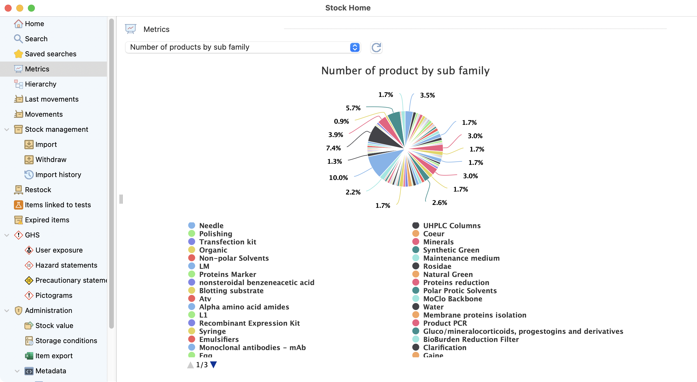 This option gives you access to lots of info. It shows the distribution of your stocks by sub-families.