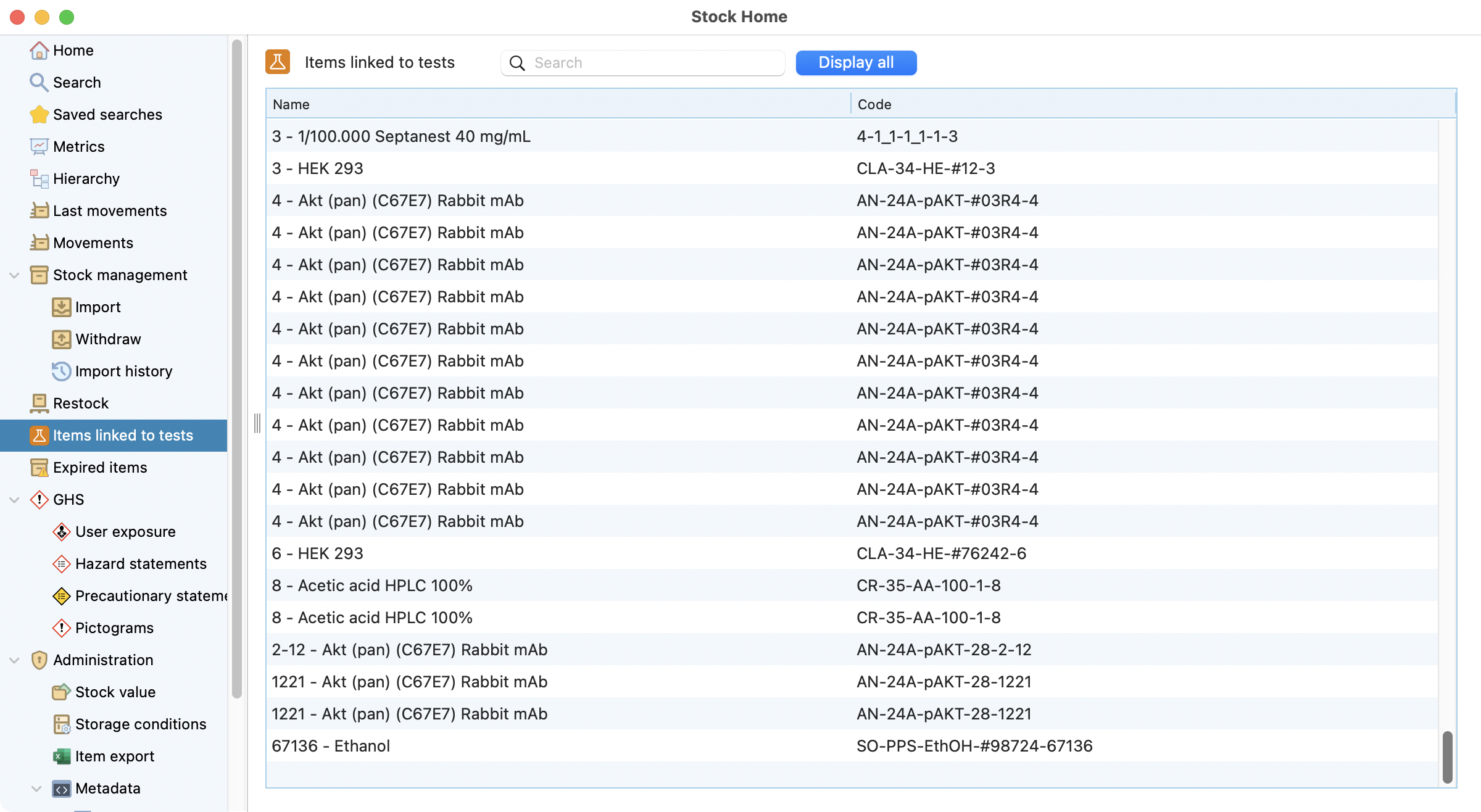 This tab displays all the items that were used in a test. You can use the search bar in order to find a specific item.