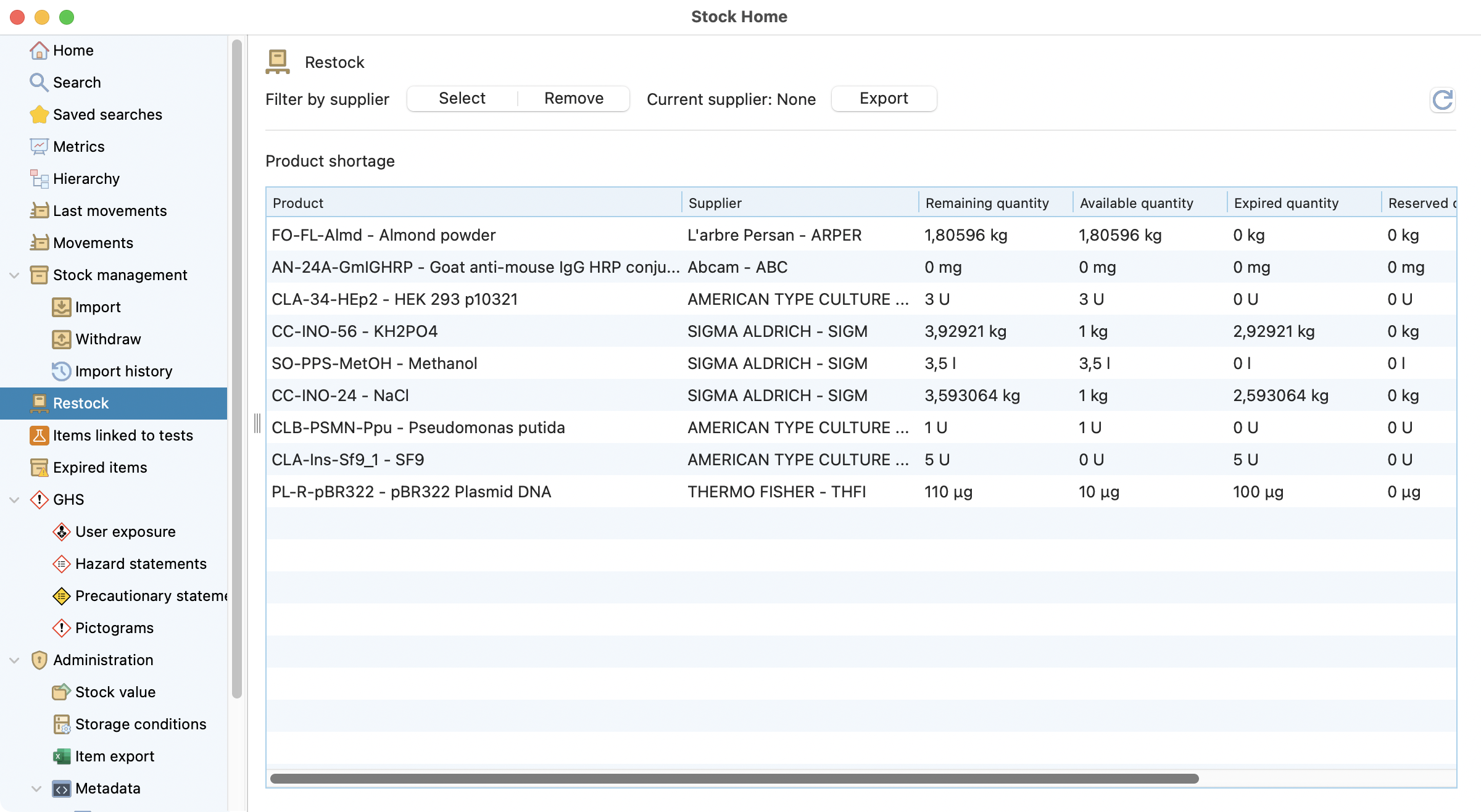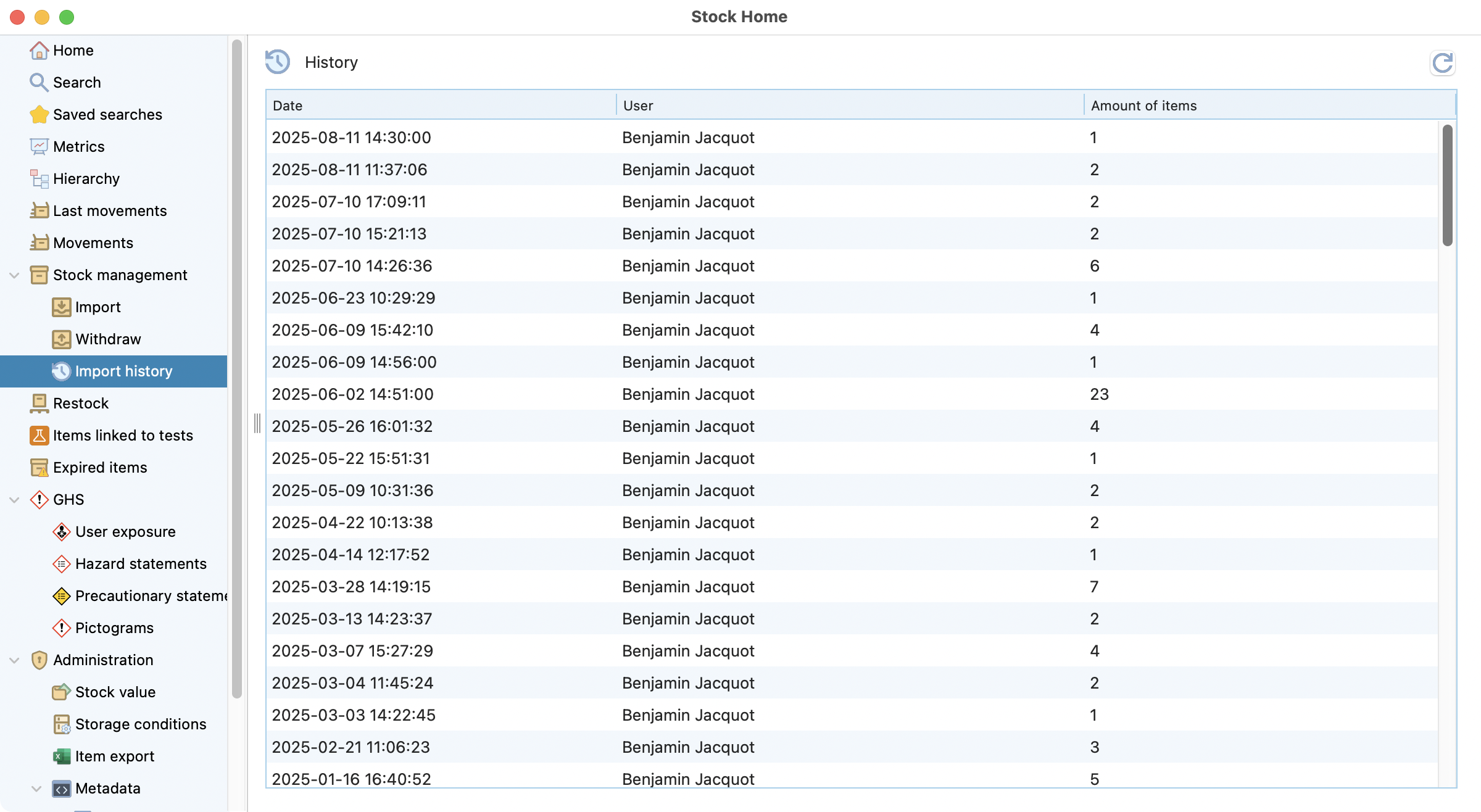 This section aims to help you add new items or remove used ones from your stock. This is, for example, after a delivery.